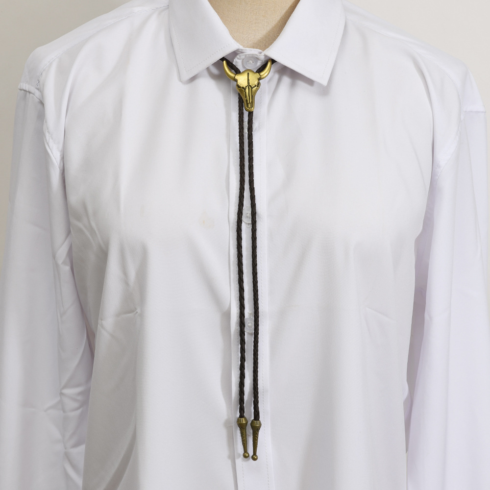 复古牛头波洛领结男女通用编织皮绳项链西部风合金吊坠时尚百搭配