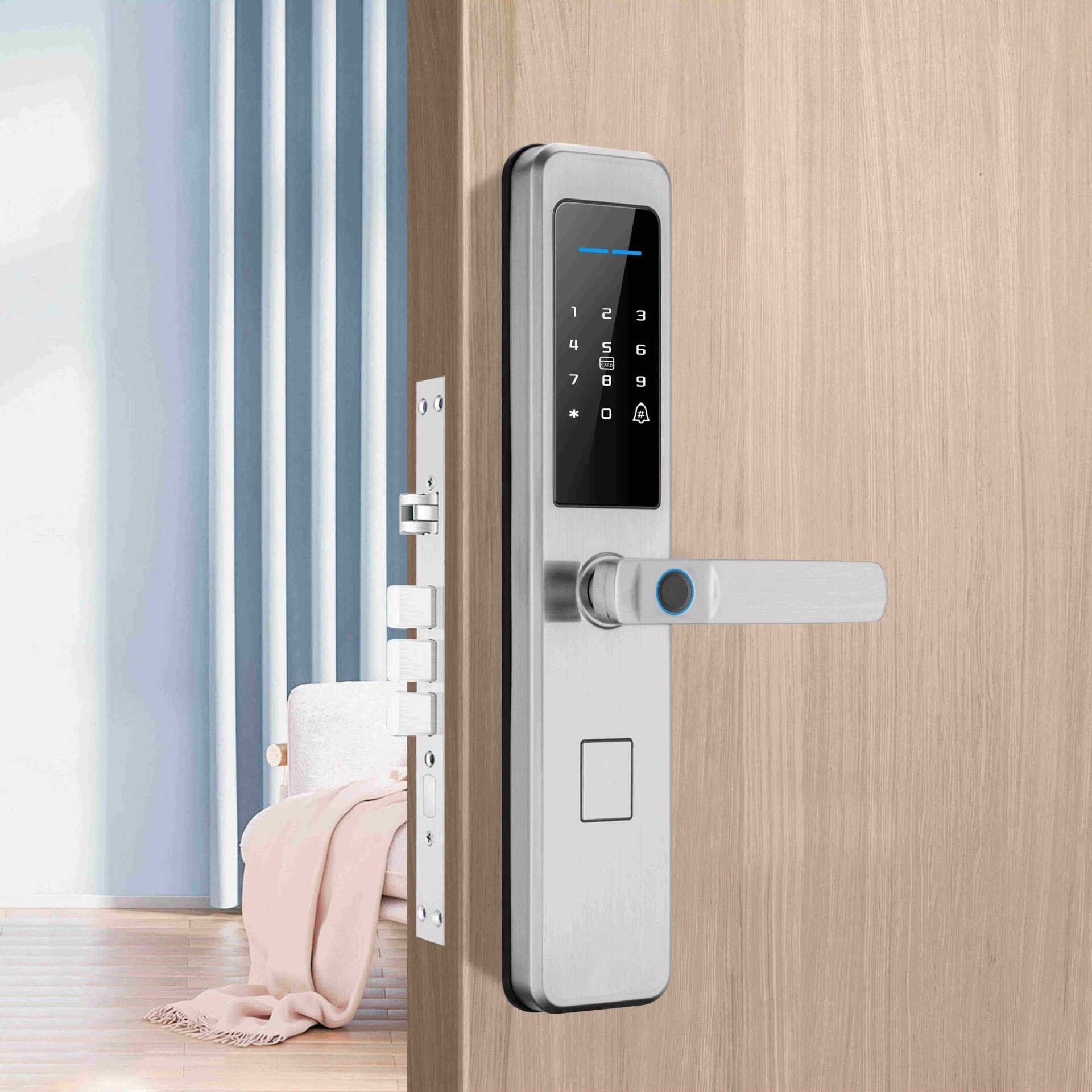 全自动智能锁带不锈钢手柄电动数字指纹锁WiFi密码卡安全系统门锁