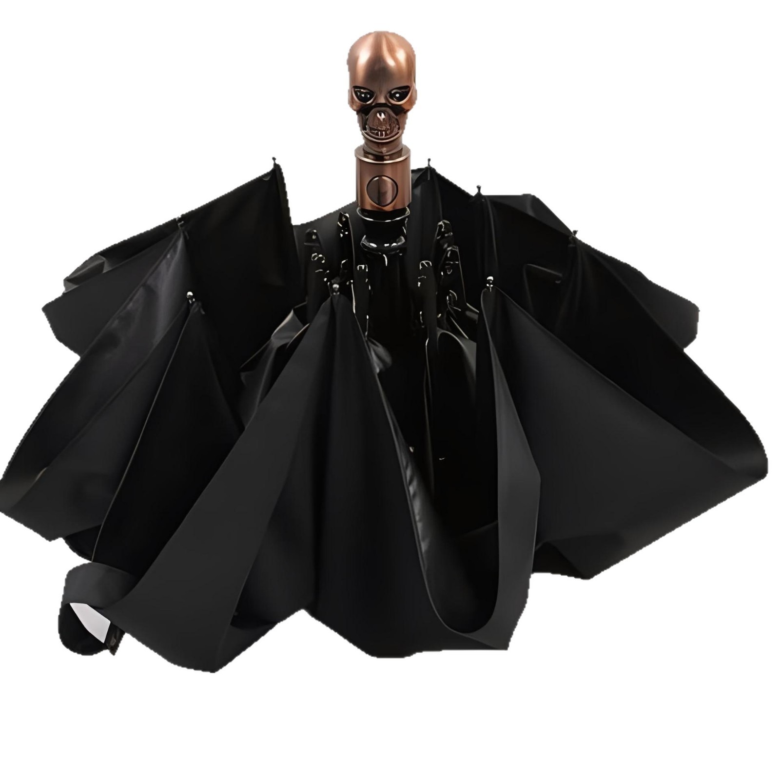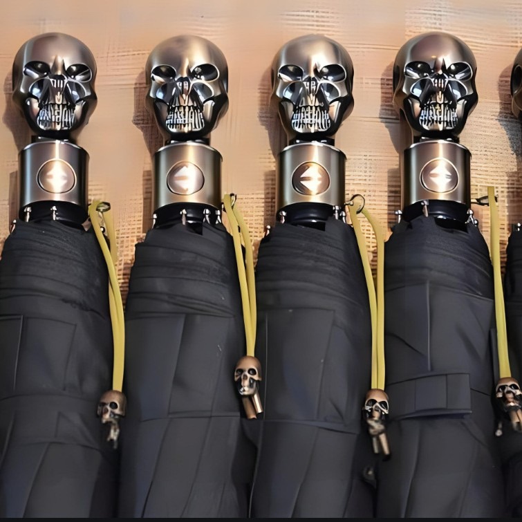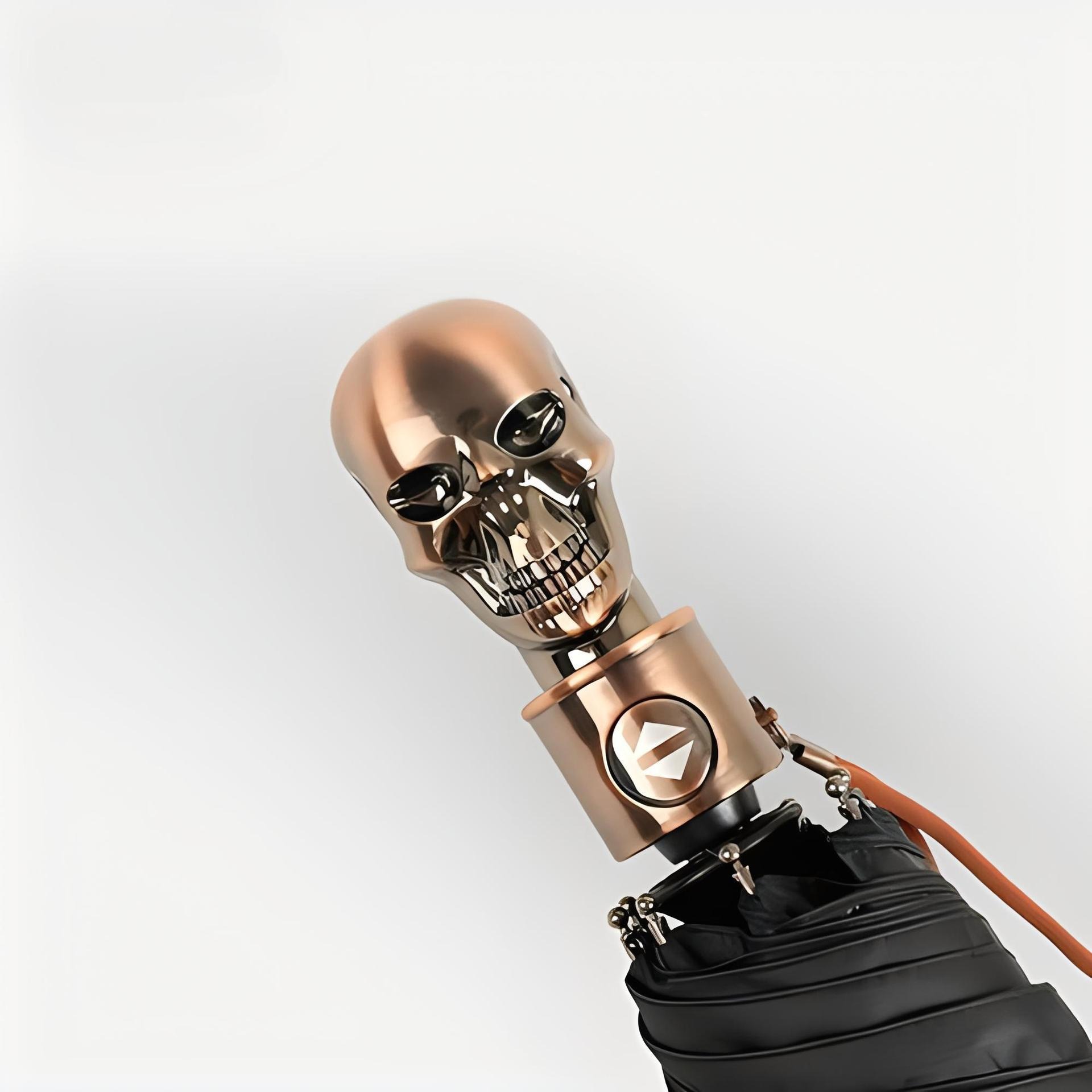 骷髅头古铜色复古三折折叠便携式自动伞黑胶防晒防紫外线雨伞