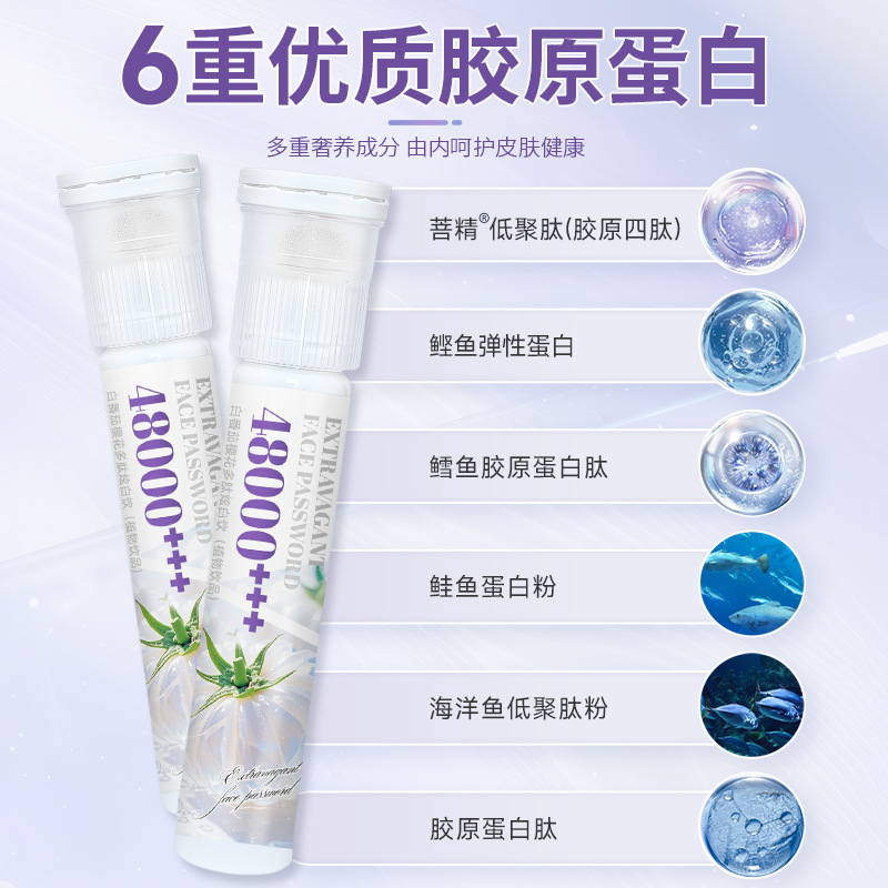 | 生产许可证编号 | SC10644178100993 | 货号 | 白番茄樱花多肽焕亮饮+ 燕窝胶原蛋白多肽焕白片 |