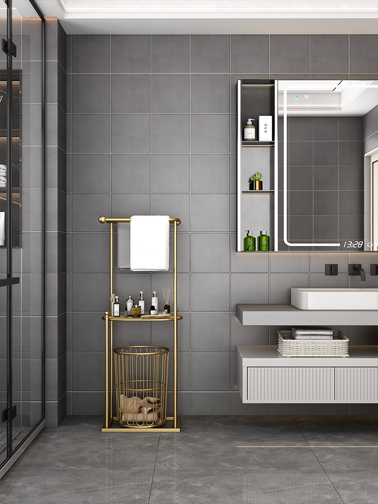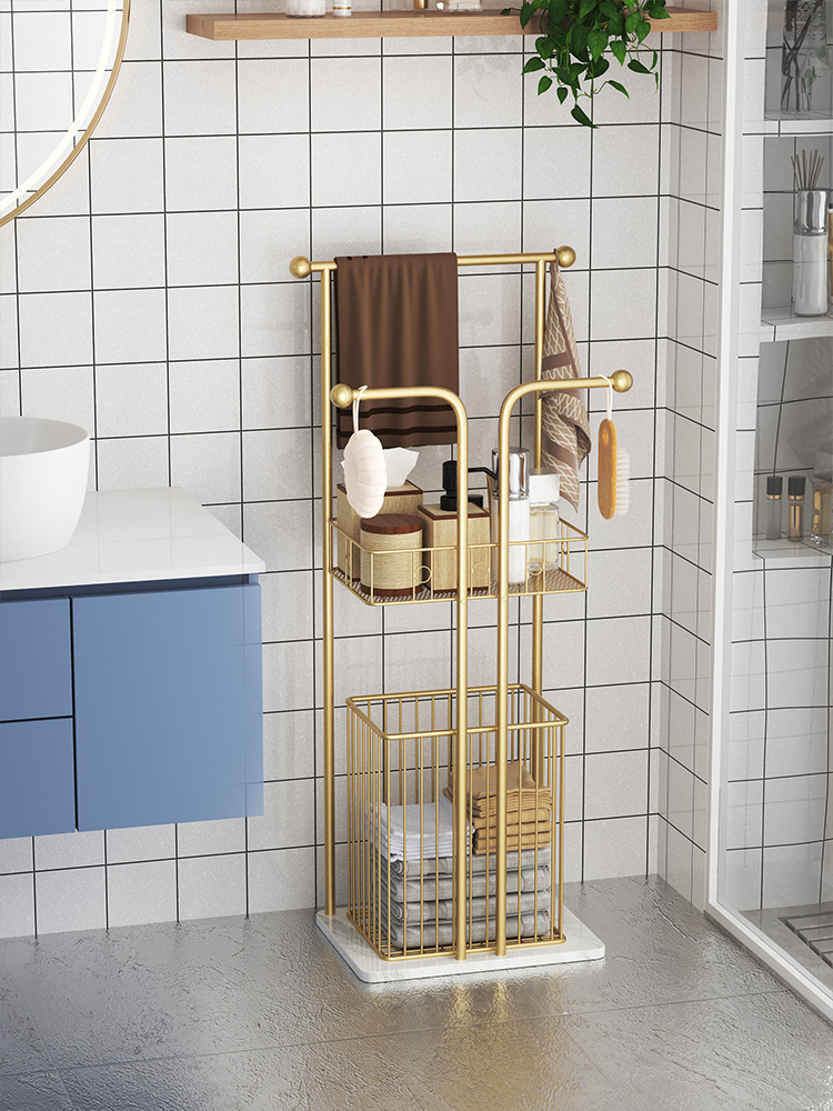 德国2026新款批发铁艺卫生间浴室浴缸边置物架落地轻奢岩板浴巾毛