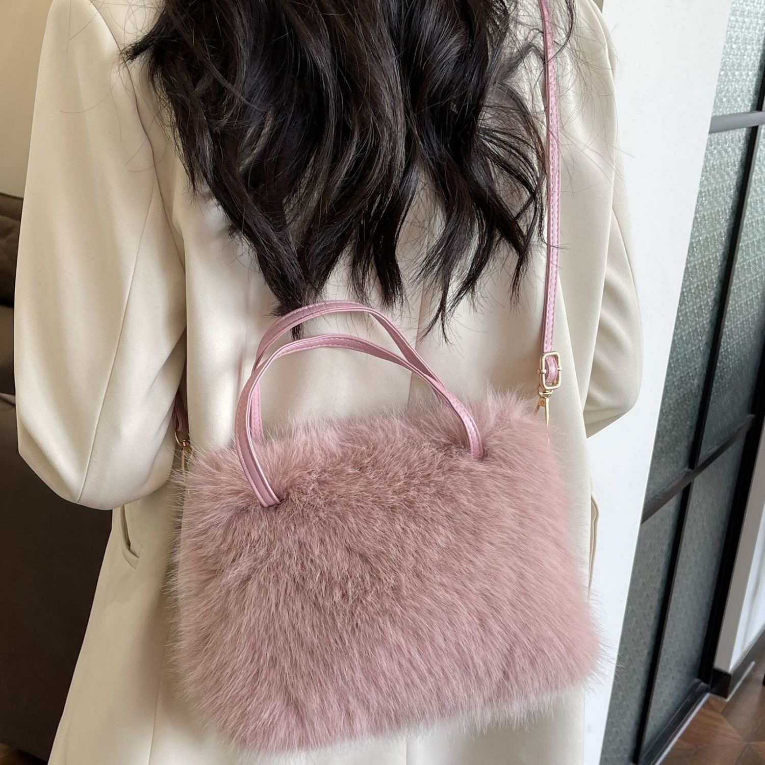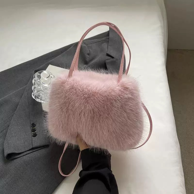 斜挎包毛毛手提包女包秋冬小众软糯毛茸茸斜挎单肩包批发斜挎包