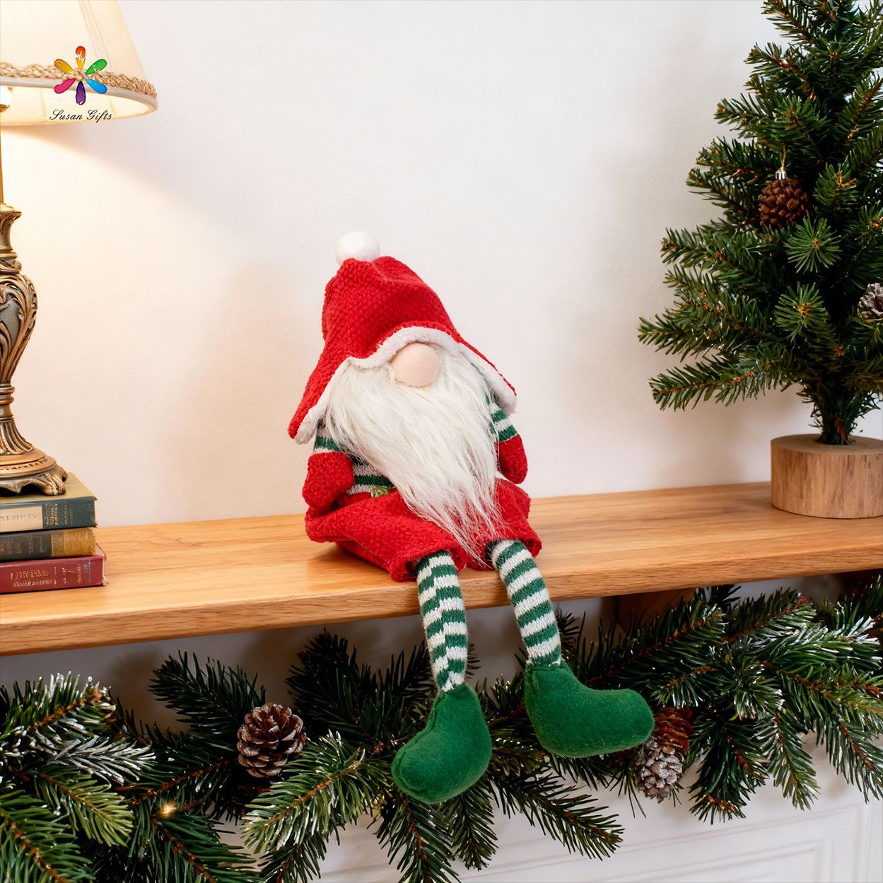 圣诞批发坐姿垂腿地精红帽子绿白条纹衣服红裤子家居橱窗装饰