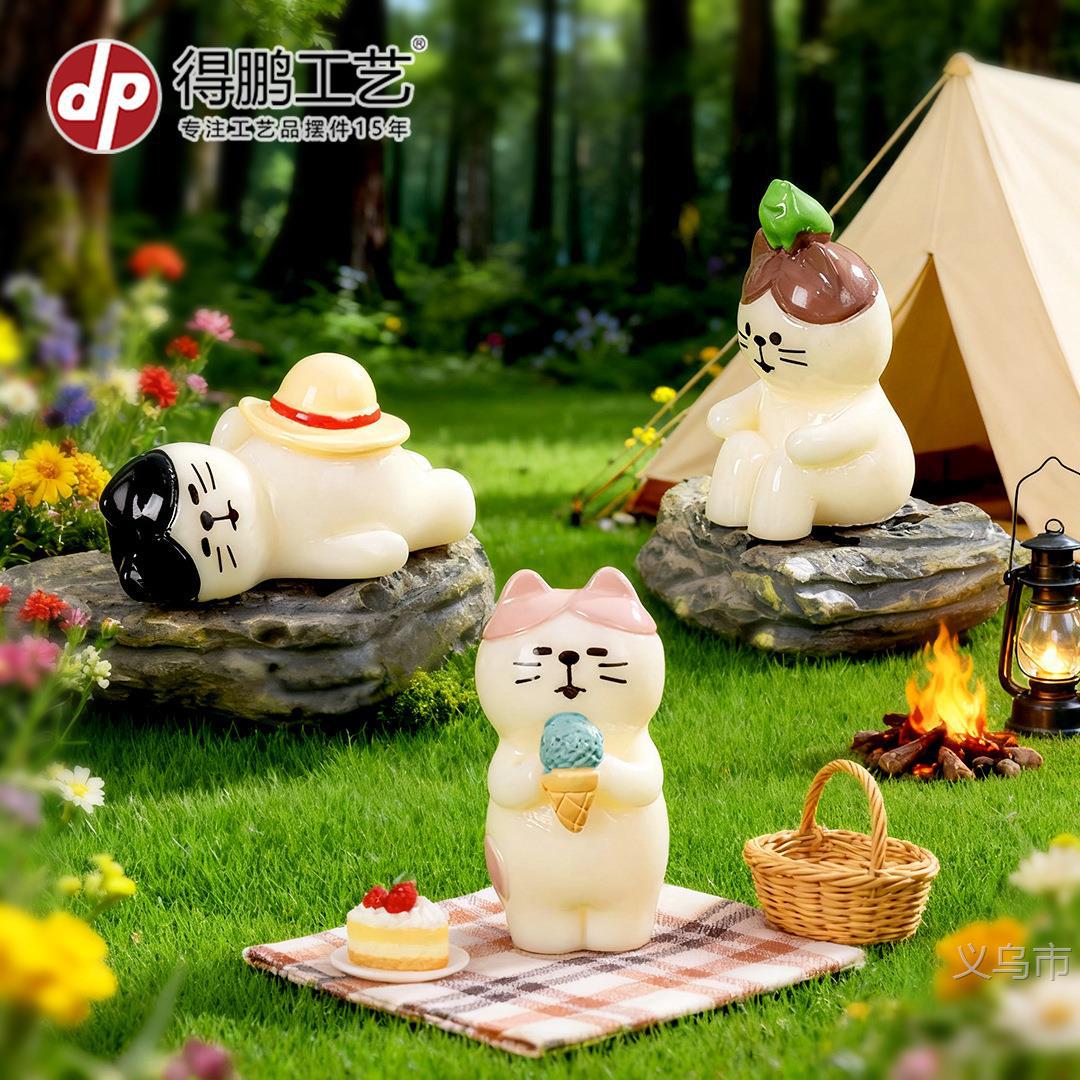 微景观卡通可爱日系游玩猫咪树脂工艺品装饰配件桌面汽车载小摆件