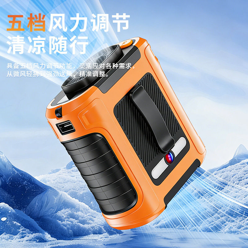 新款挂腰风扇便携随身小空调户外工地露营手电筒长续航挂腰小风扇