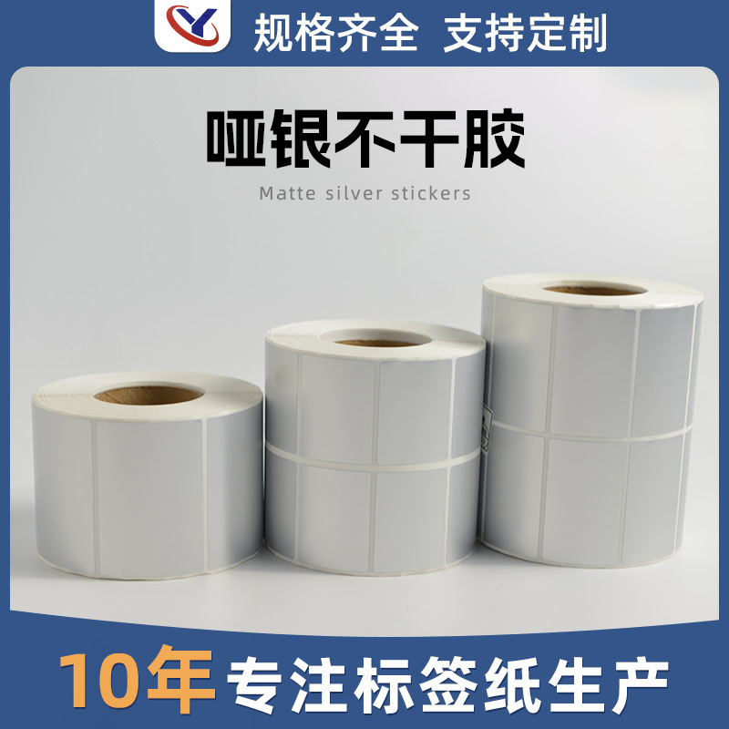 哑银不干胶防水标签耐高温银色撕不烂标亚银龙PET条码打印纸批发