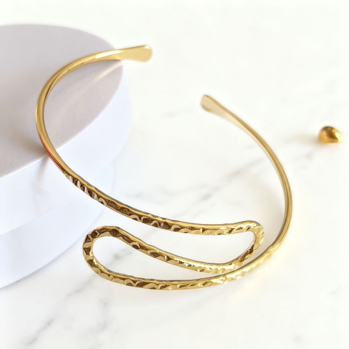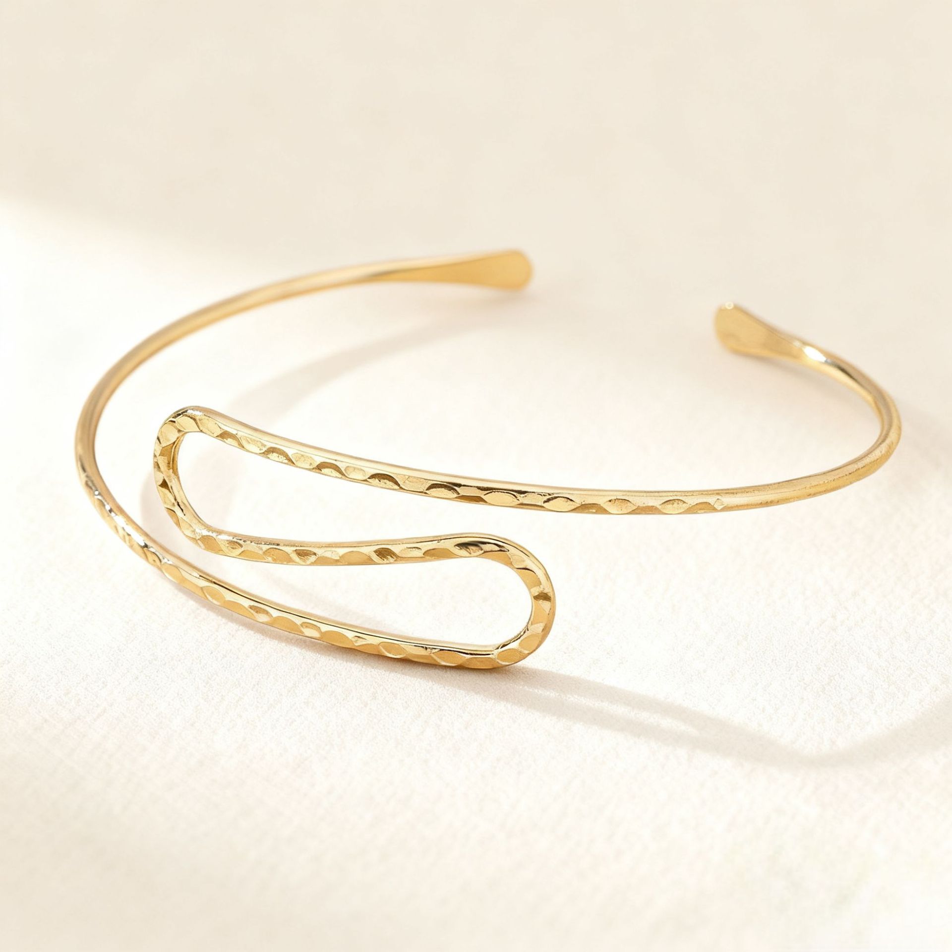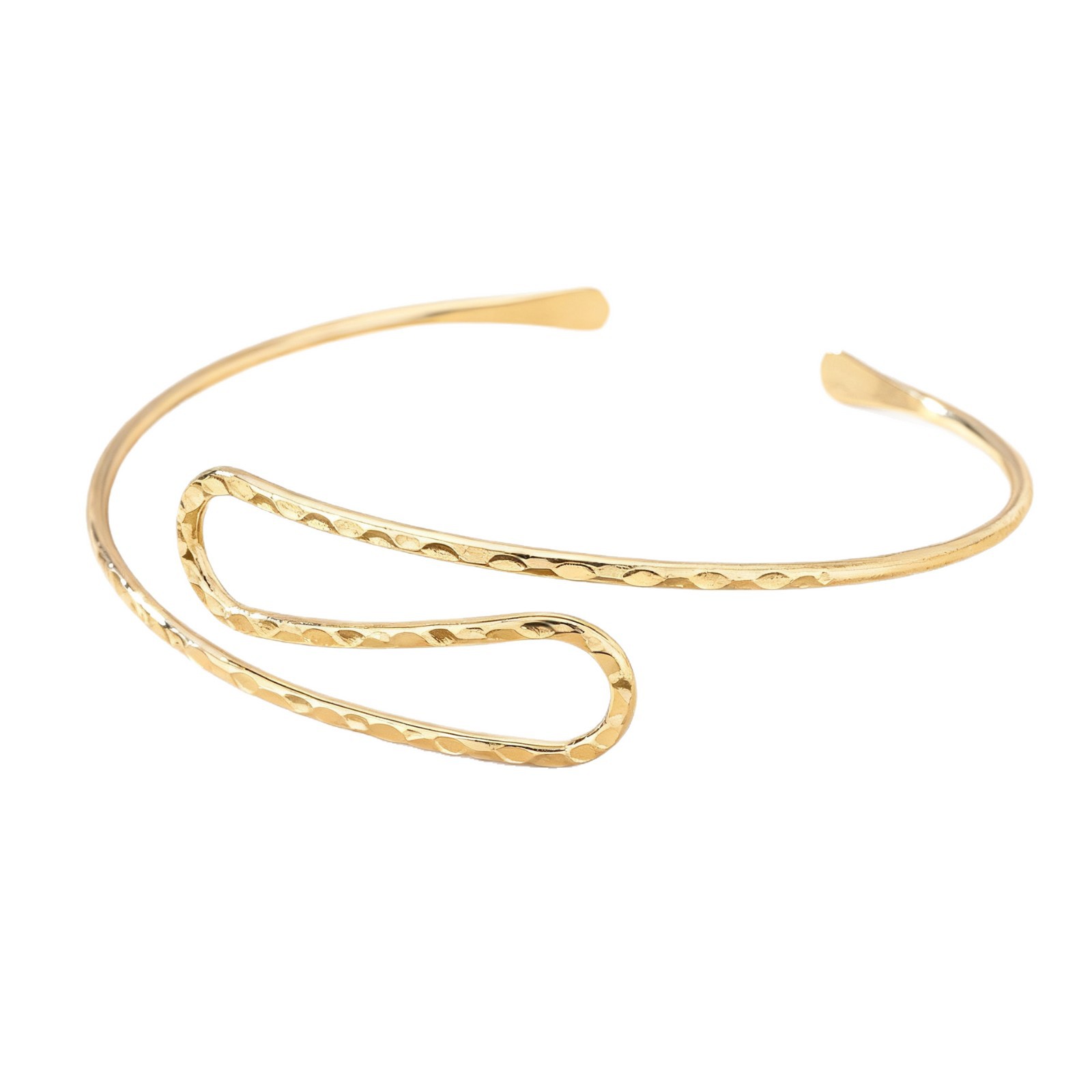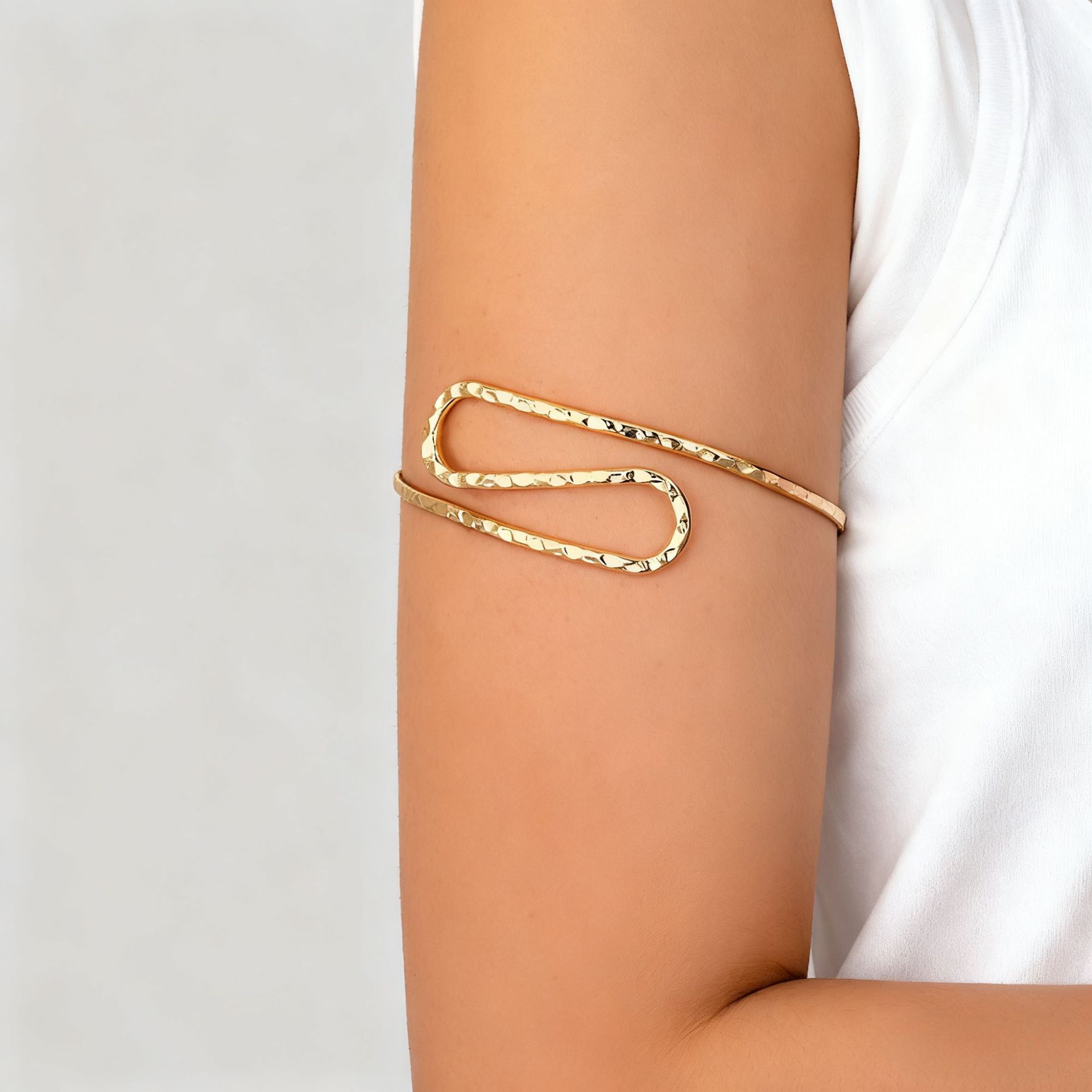 欧美跨境波浪个性金属质感压纹简约几何S形扭转乾坤臂环臂镯金色