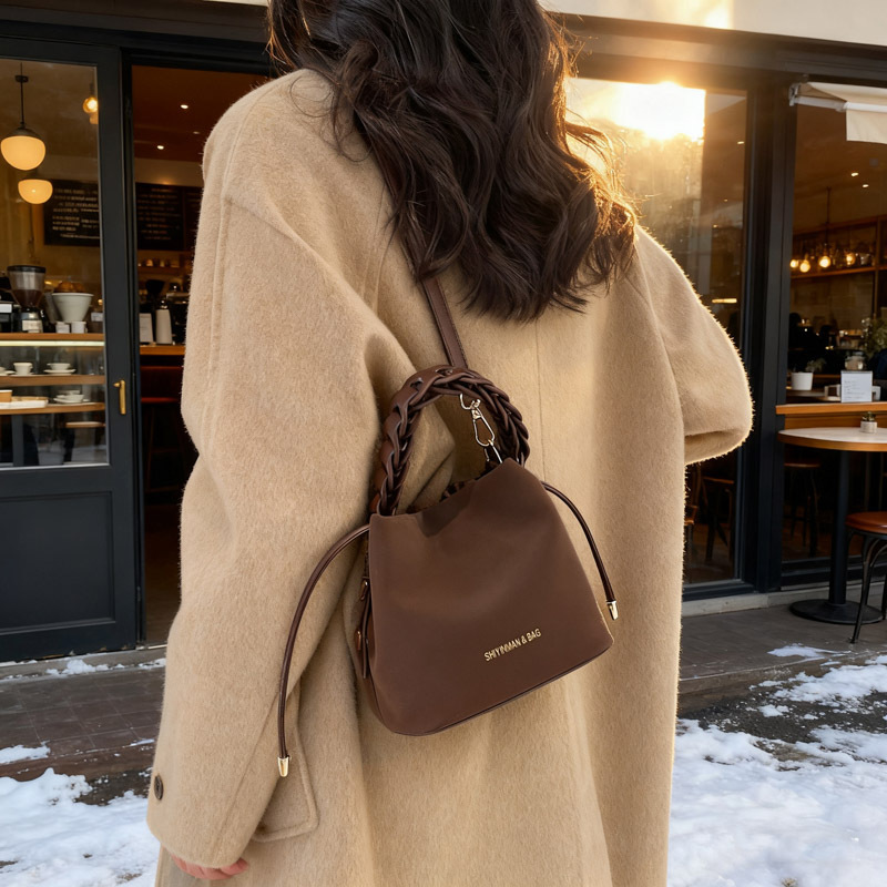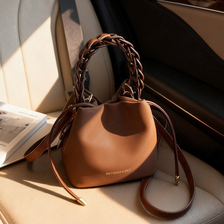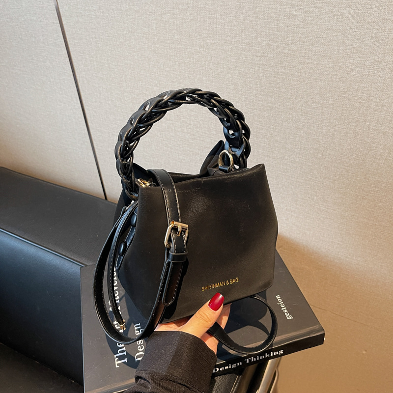 小众编织手柄水桶包女2025新款潮百搭手提斜挎包高级感通勤手拎包