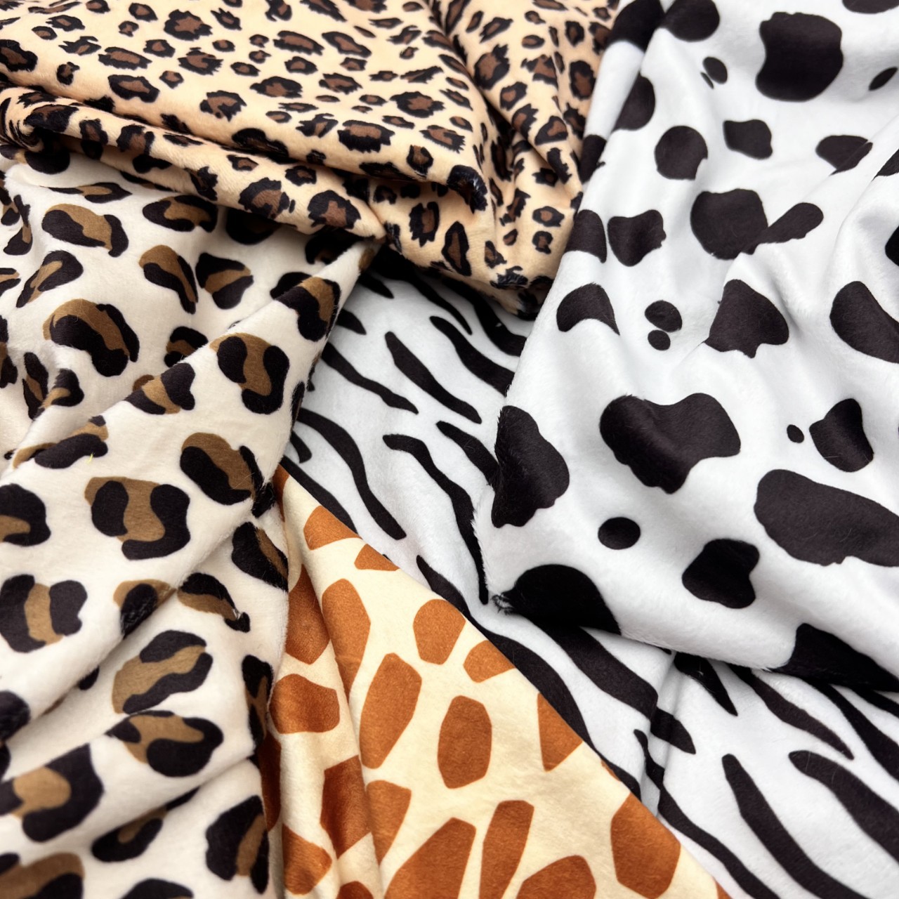 现货水晶绒数码印花超柔豹纹奶牛纹印花布料服装玩具鞋材帽子面料