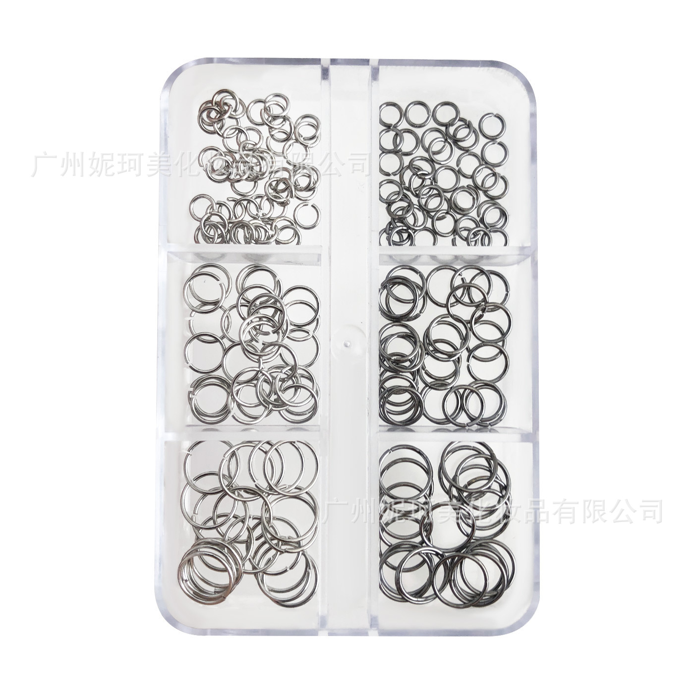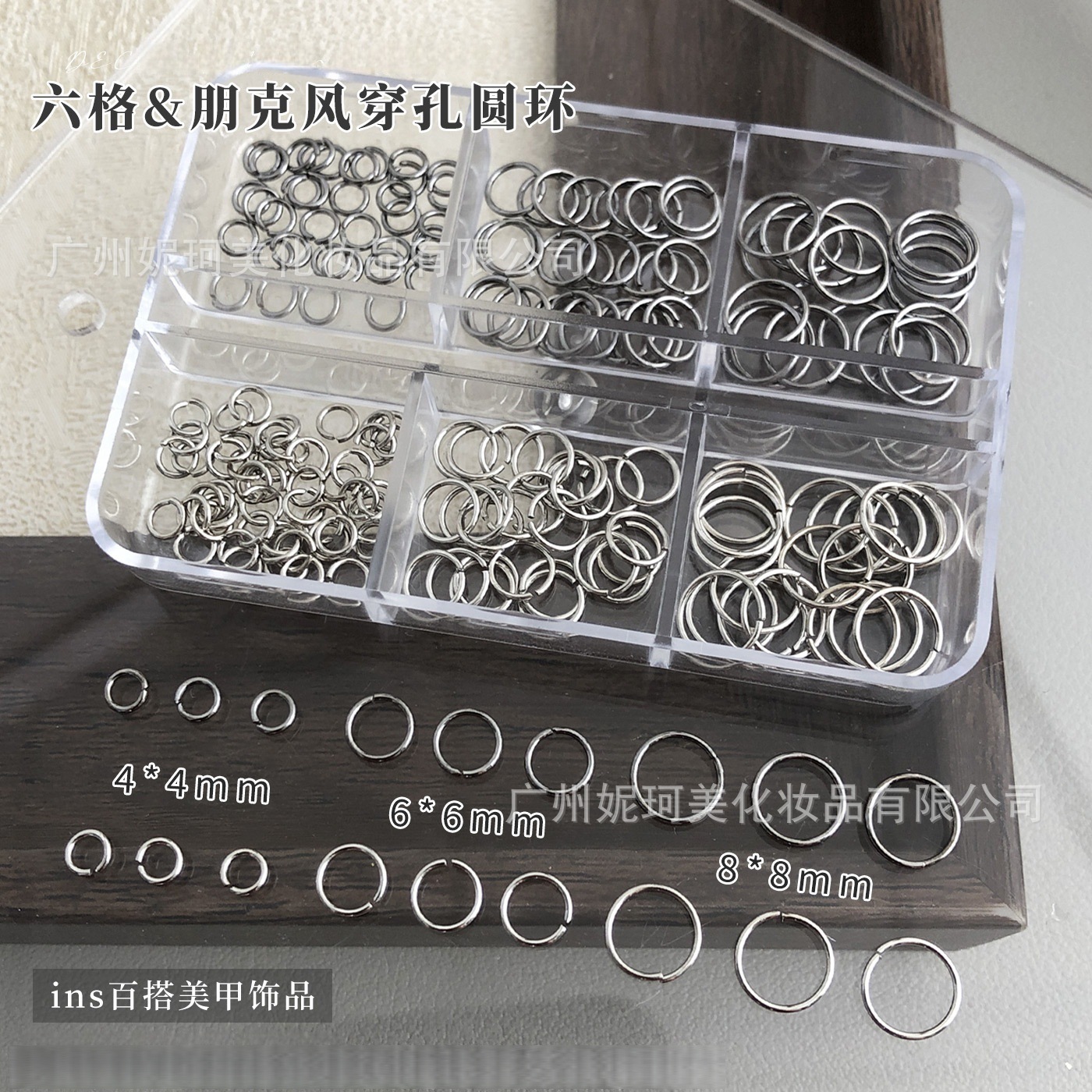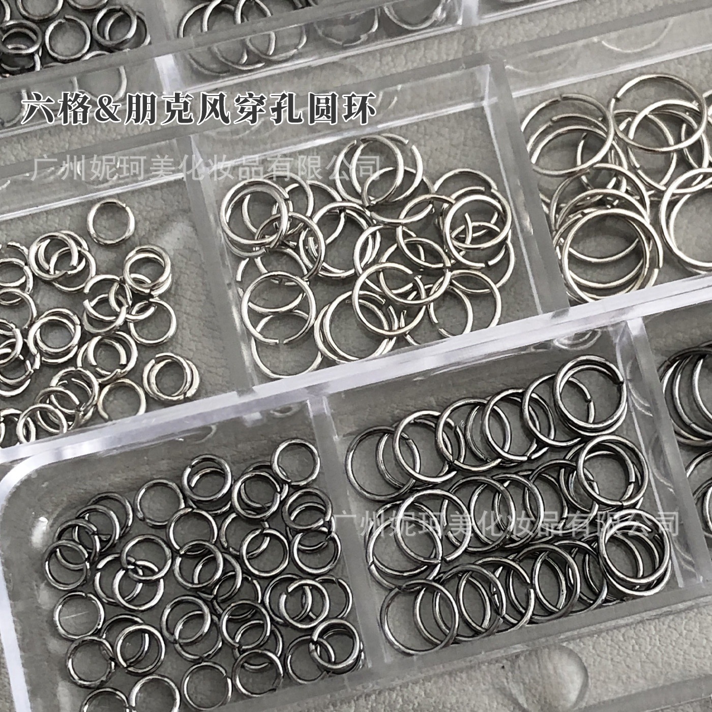 跨境爆款6格穿孔圆环美甲饰品欧美风圆形圈圈金属diy穿戴指甲饰品