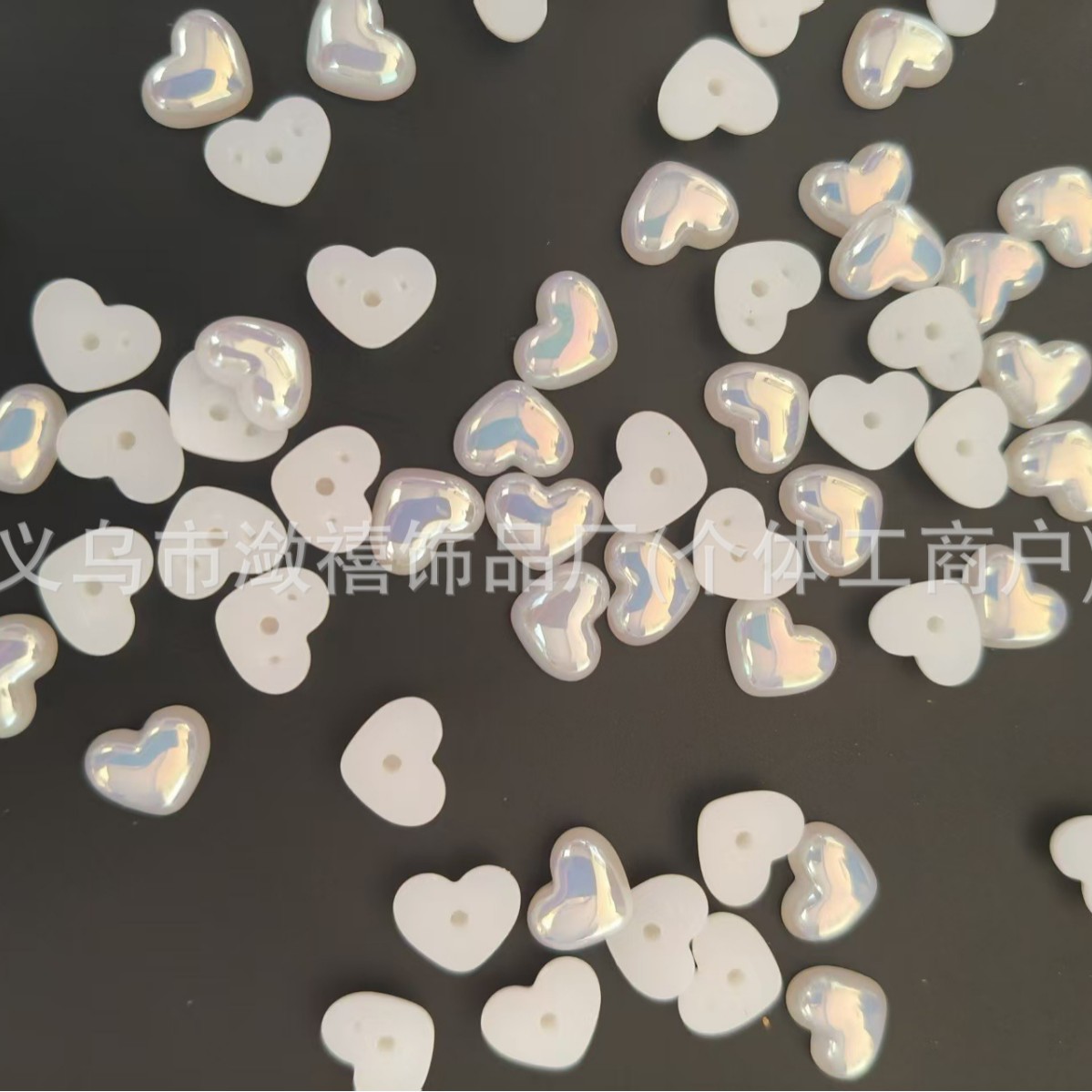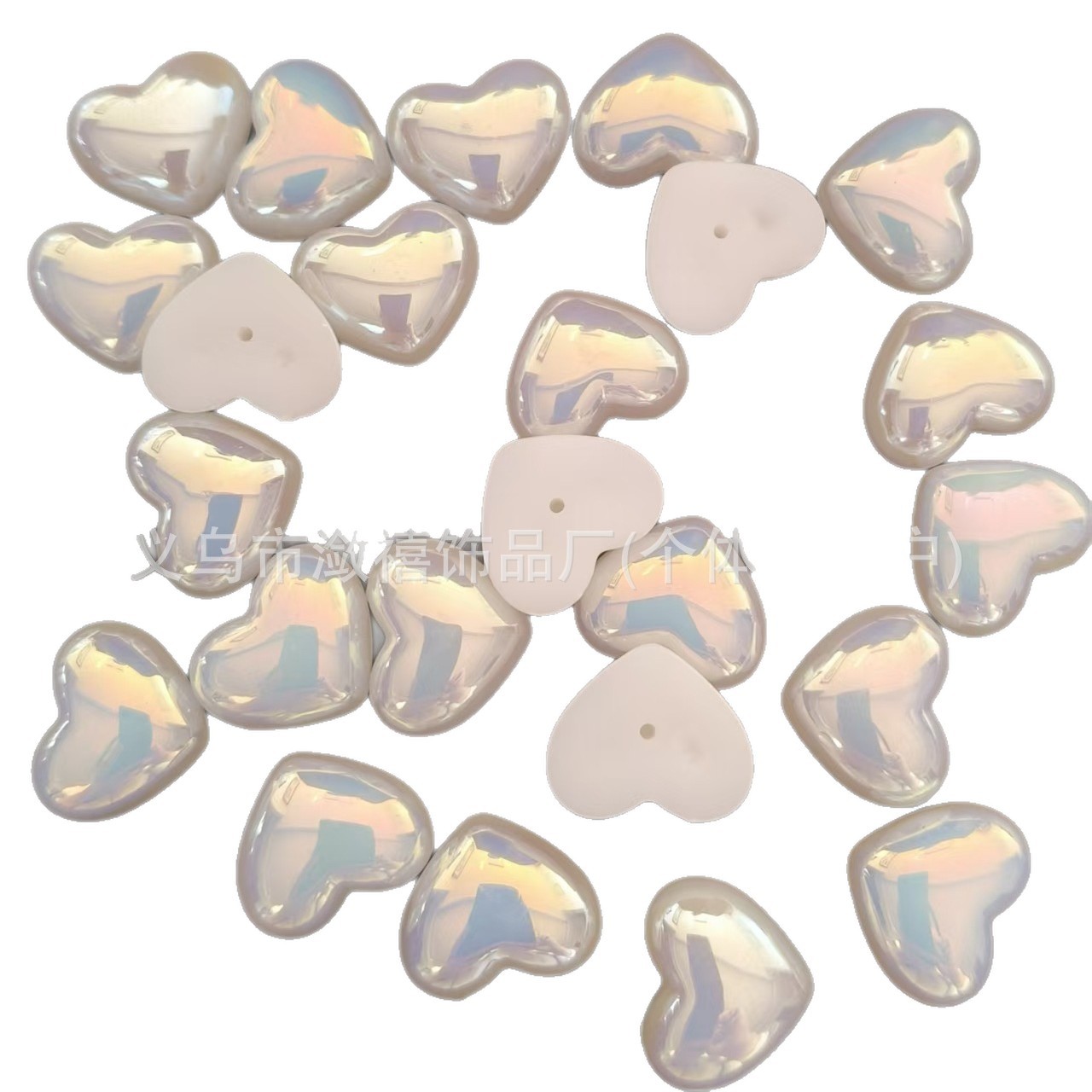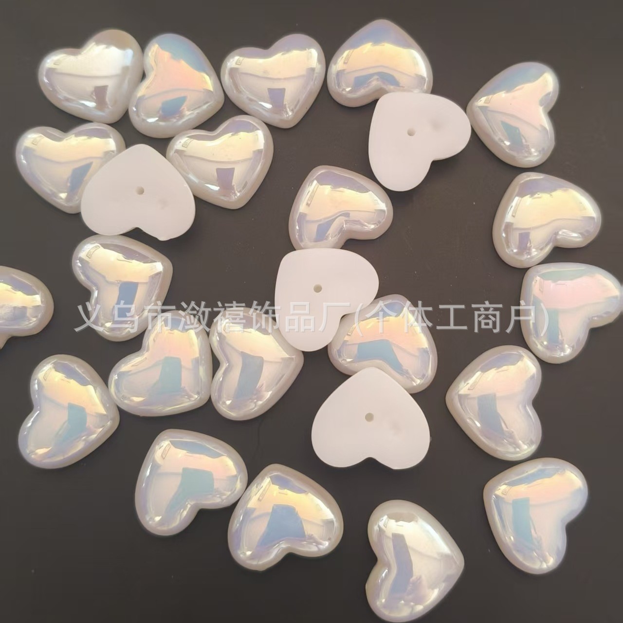 ABS仿珍珠半面桃心爱心贴片彩色平底心形珠diy手机美容贴钻散珠子
