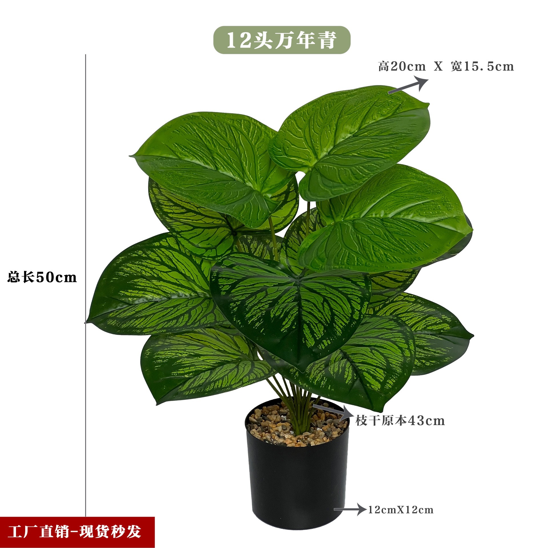 跨境代亚马逊仿真绿植春芋叶大型植物盆景客厅家居盆栽摆件万年青