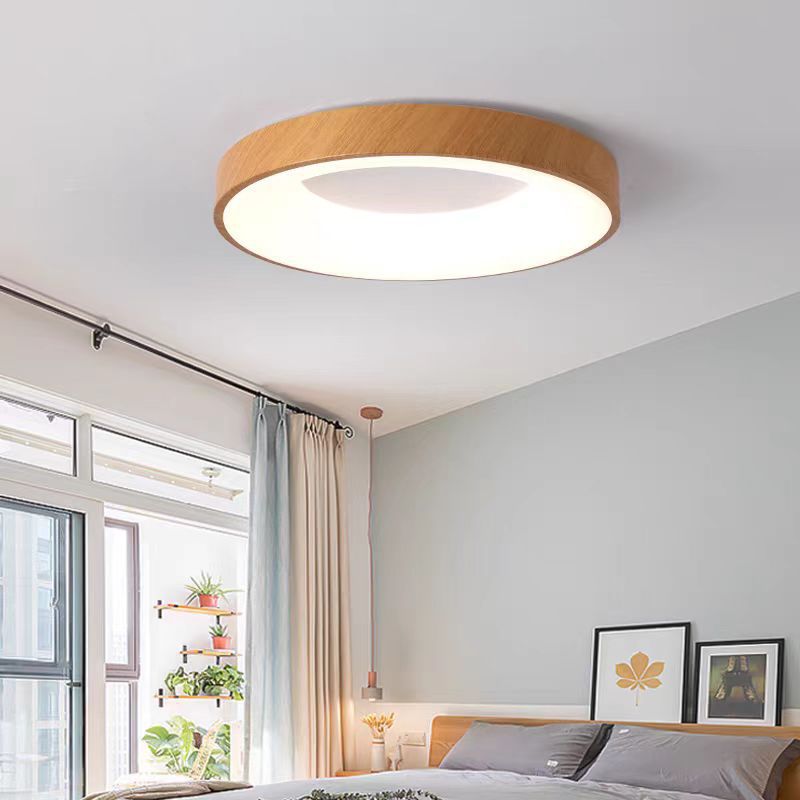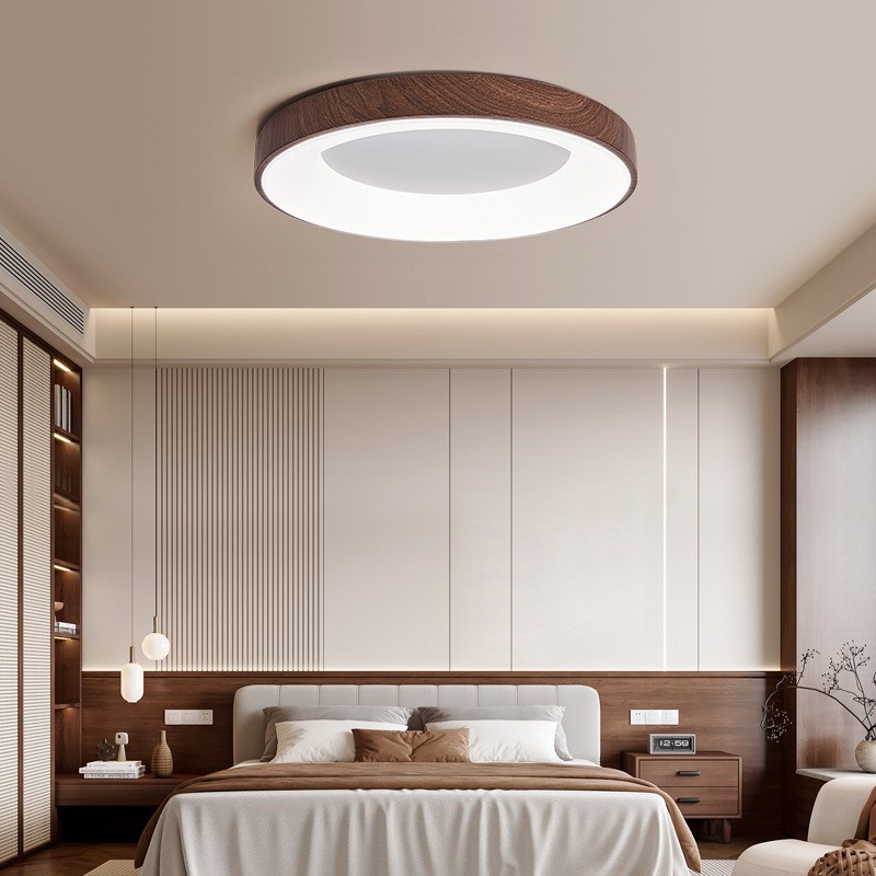 新款超薄简约木纹吸顶灯胡桃木圆形房间灯卧室过道灯源头中山工厂