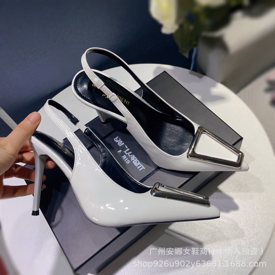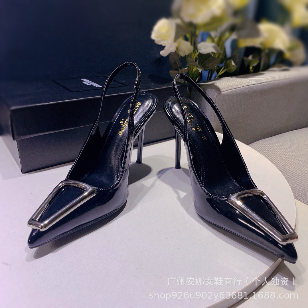 法式后空真皮绝美一字带细跟高跟鞋包头凉鞋女2024夏季新款高级感