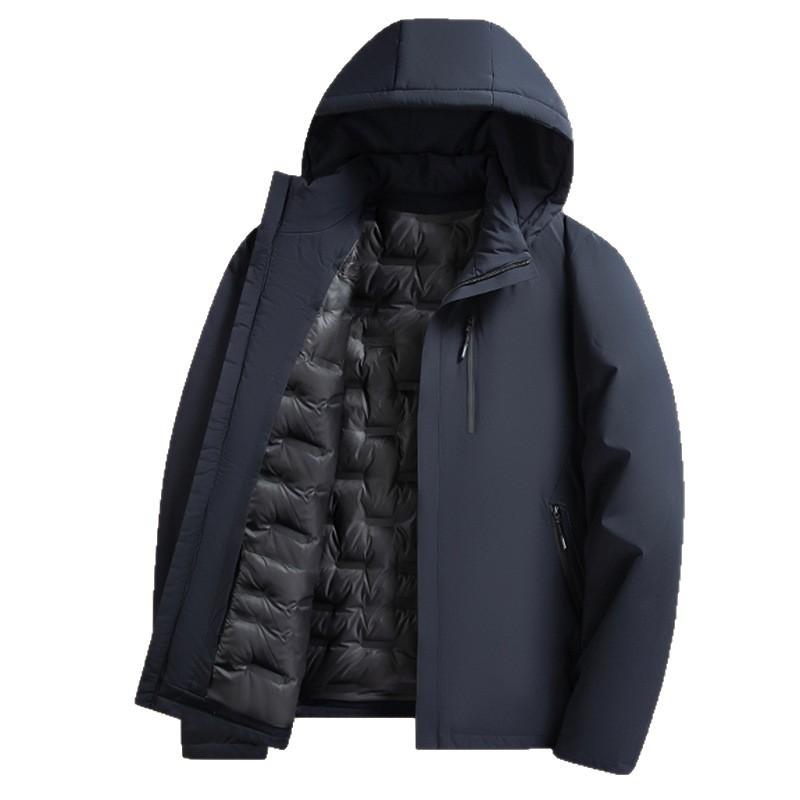 恒源祥男士羽绒服冬季新款白鸭绒内里可拆卸连帽中年爸爸冬装外套