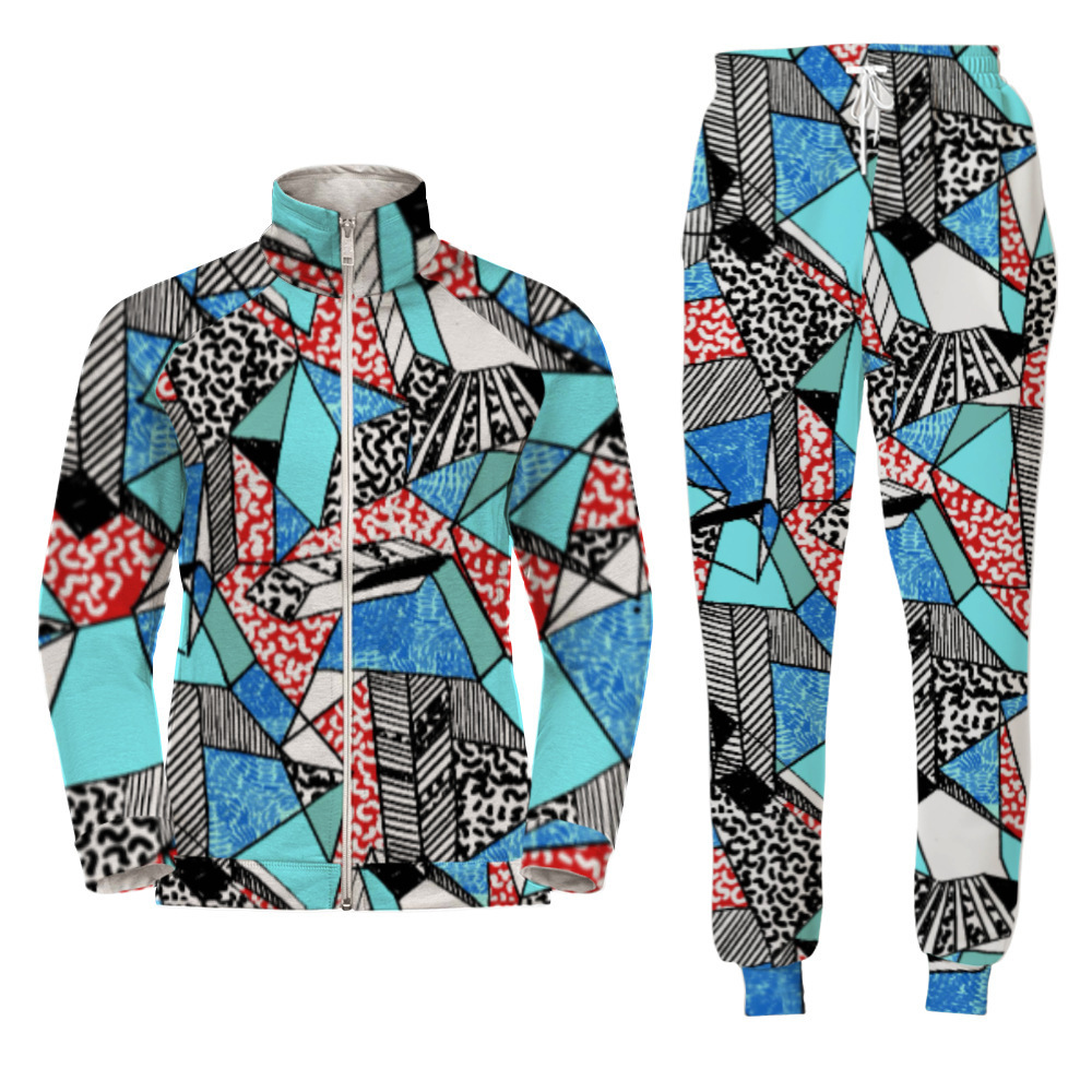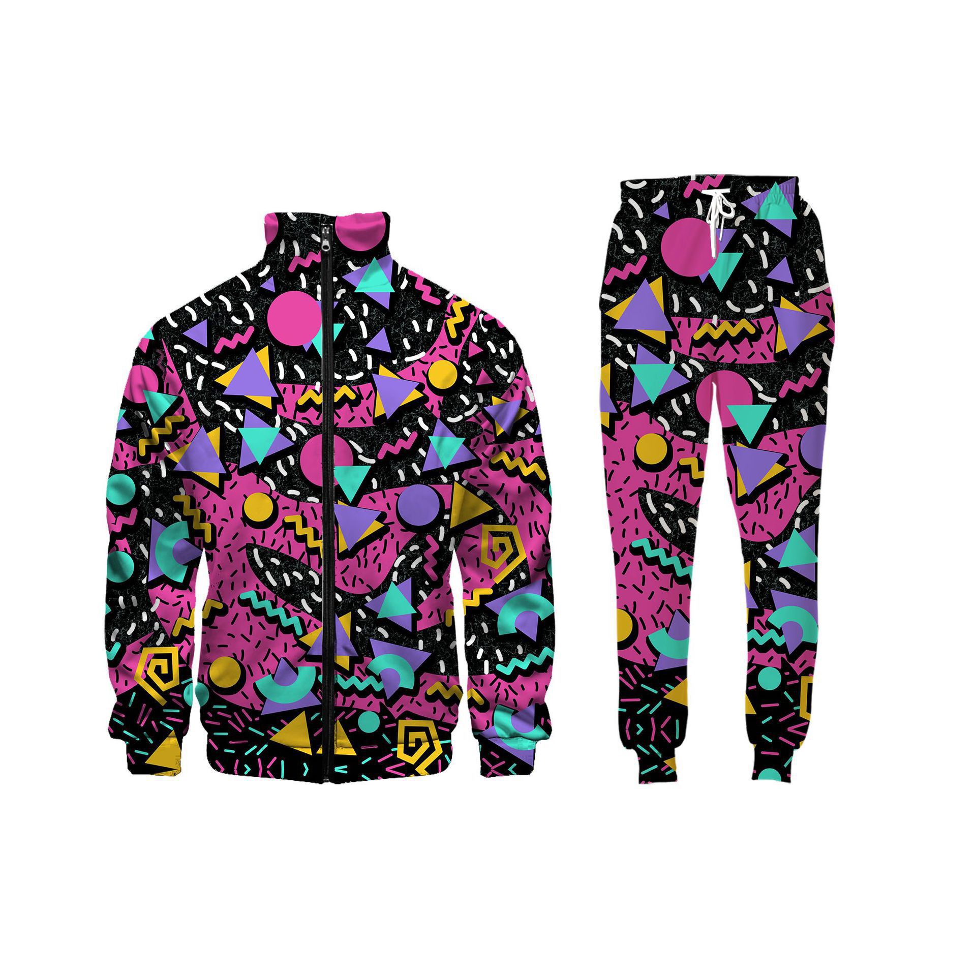 跨境欧码男士休闲运动套装3d数码印花长袖长裤卫裤拉链衫套装