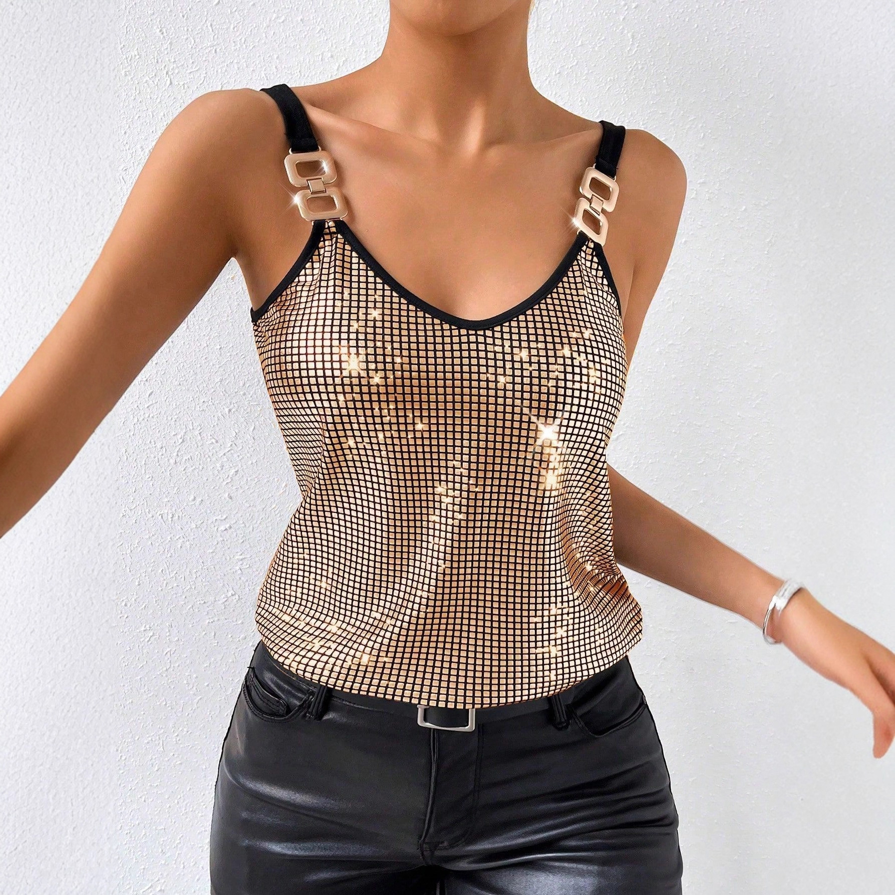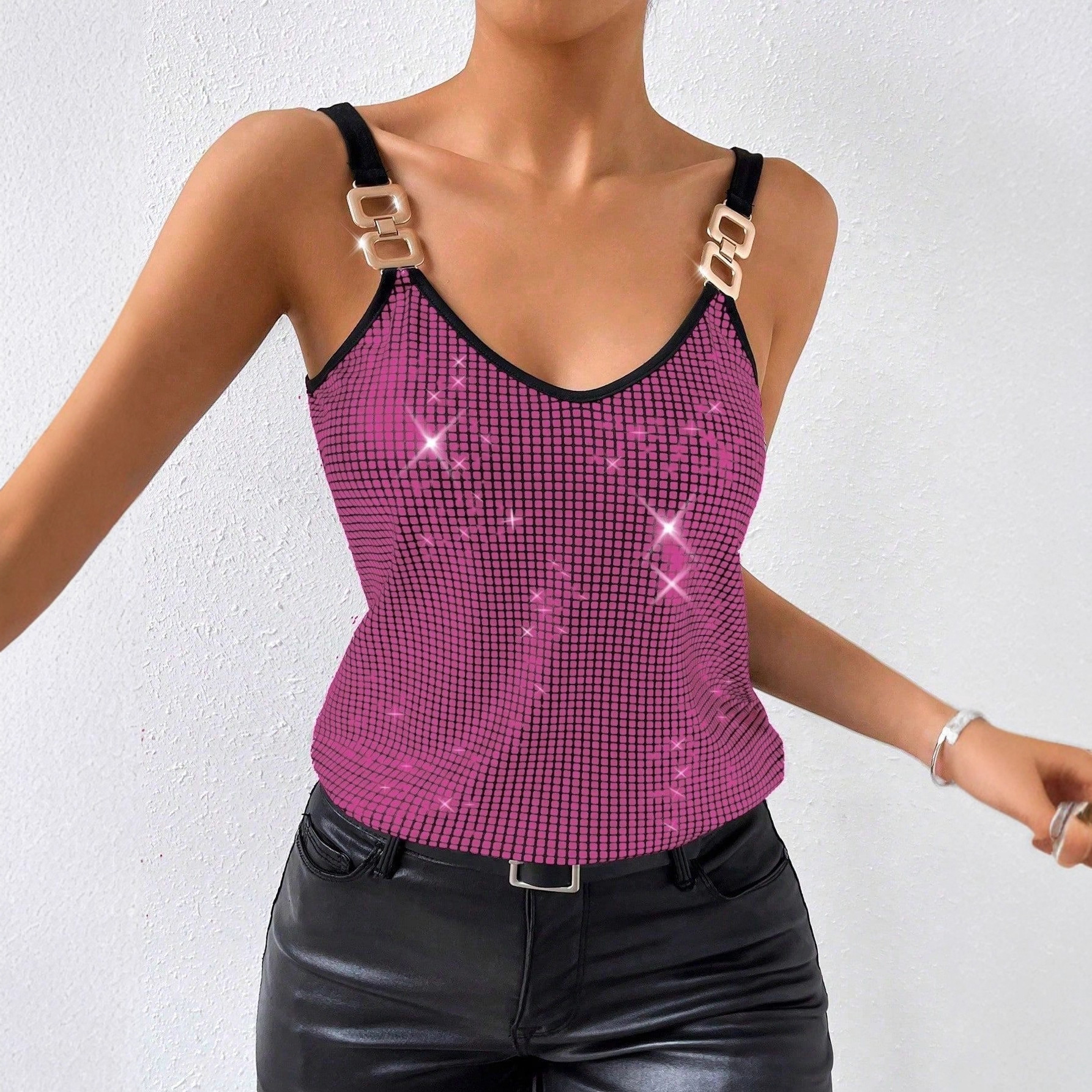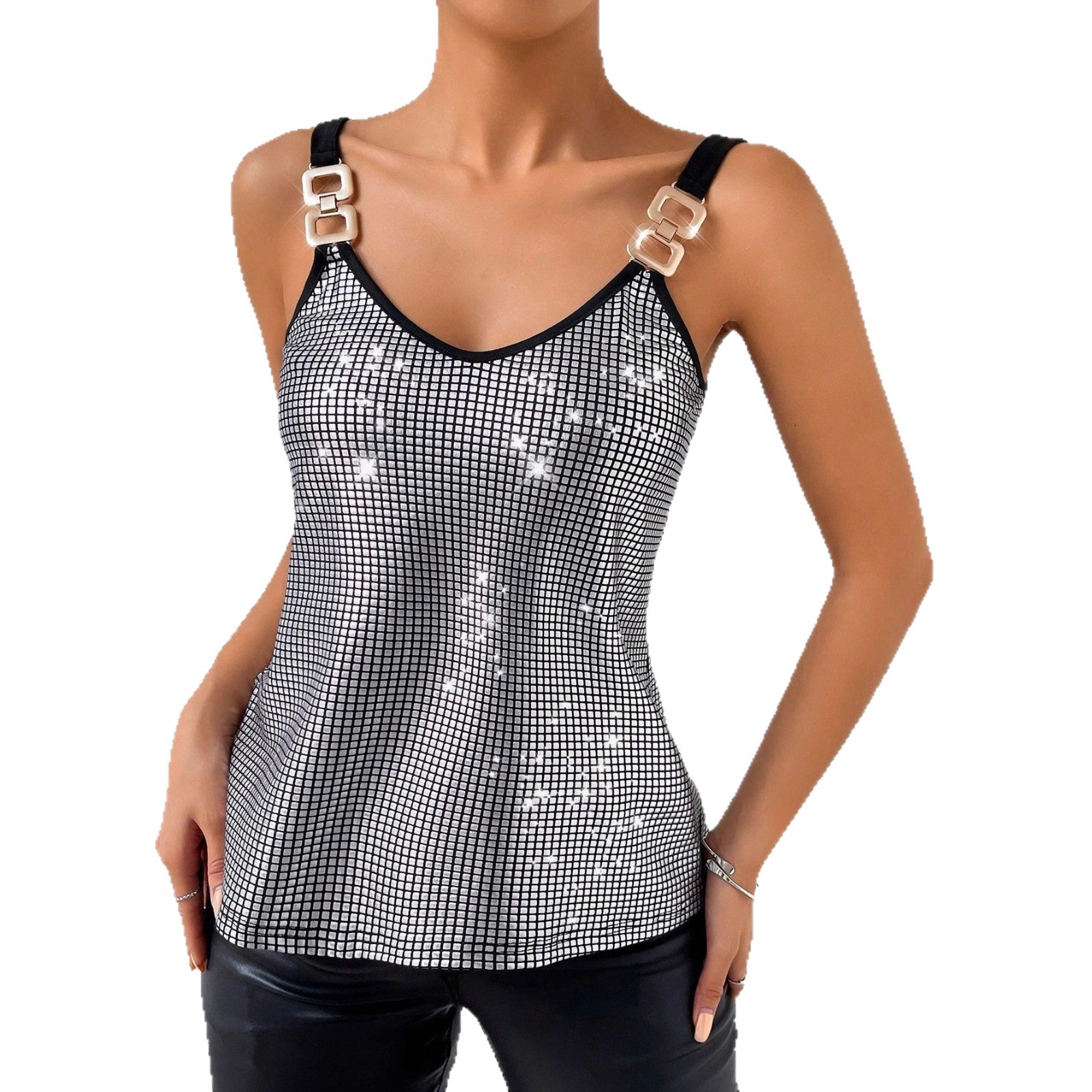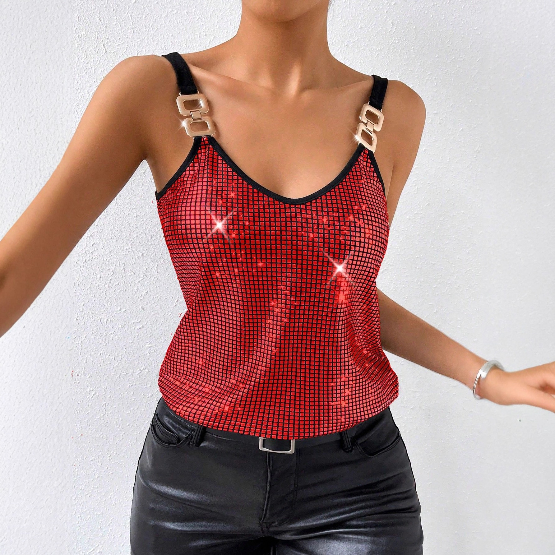 现货跨境女装欧美性感亮片吊带露背上衣女外贸亚马逊temu230429