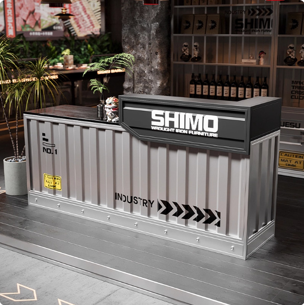 工业风酒吧餐厅吧台集装箱商用烧烤店收银台铁艺创意前台接待台