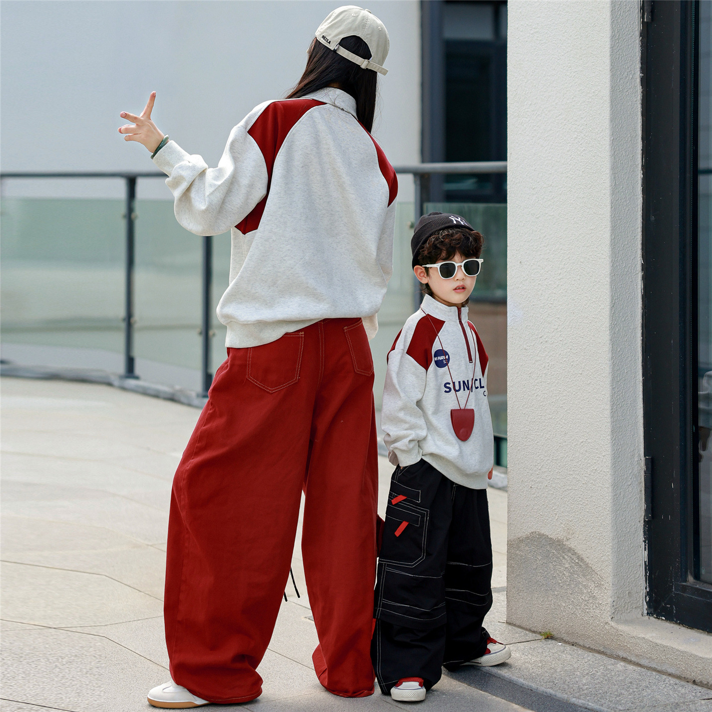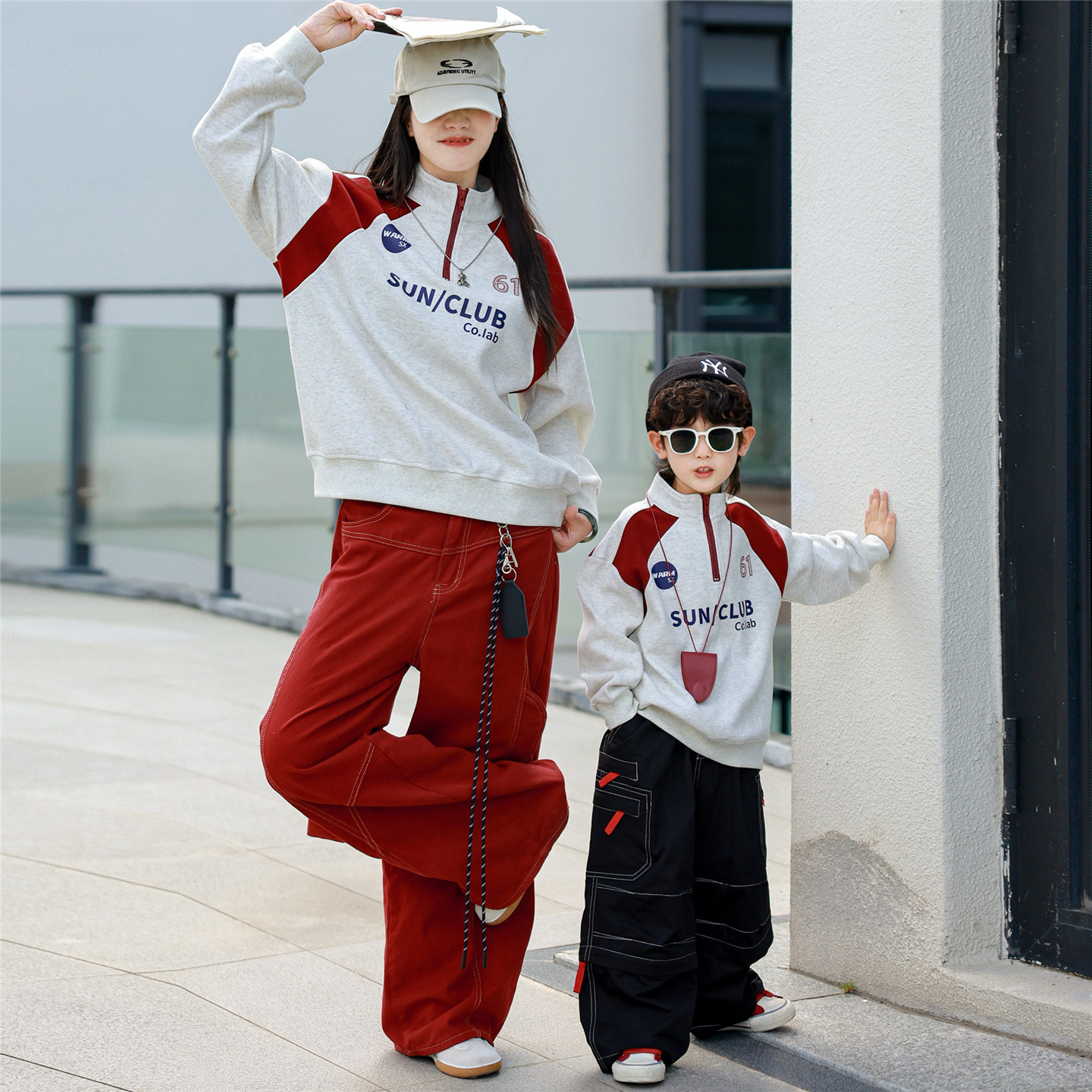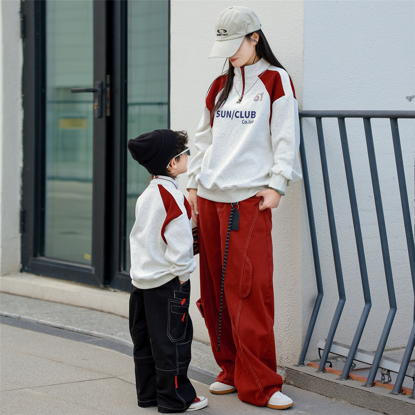 美式潮牌亲子装秋冬新款高端卫衣一家三口四口运动洋气卫衣家庭装