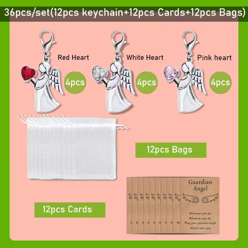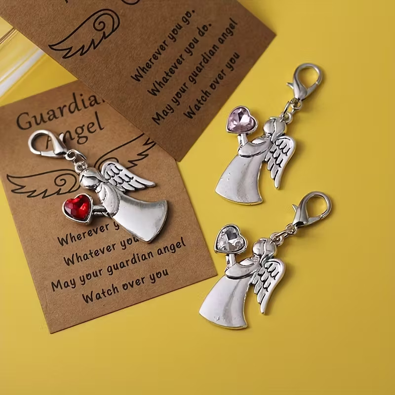 跨境热销守护天使英文旅行祝福卡镶钻天使钥匙扣节日礼物吊坠