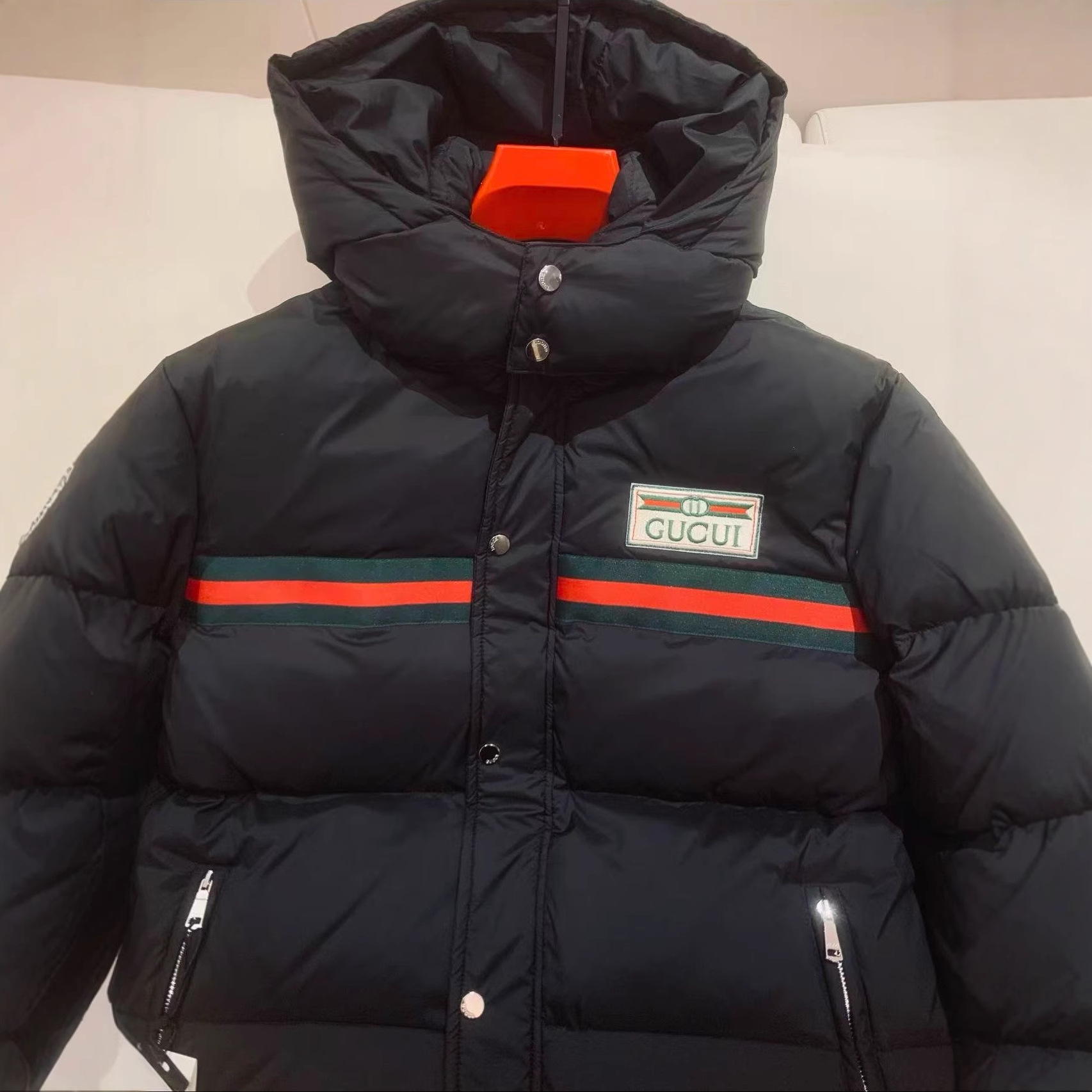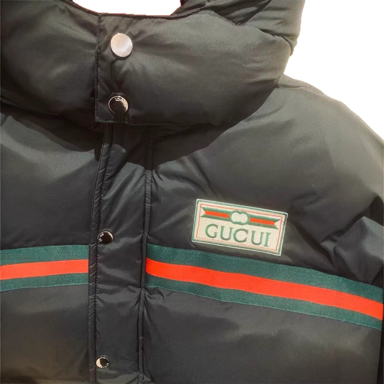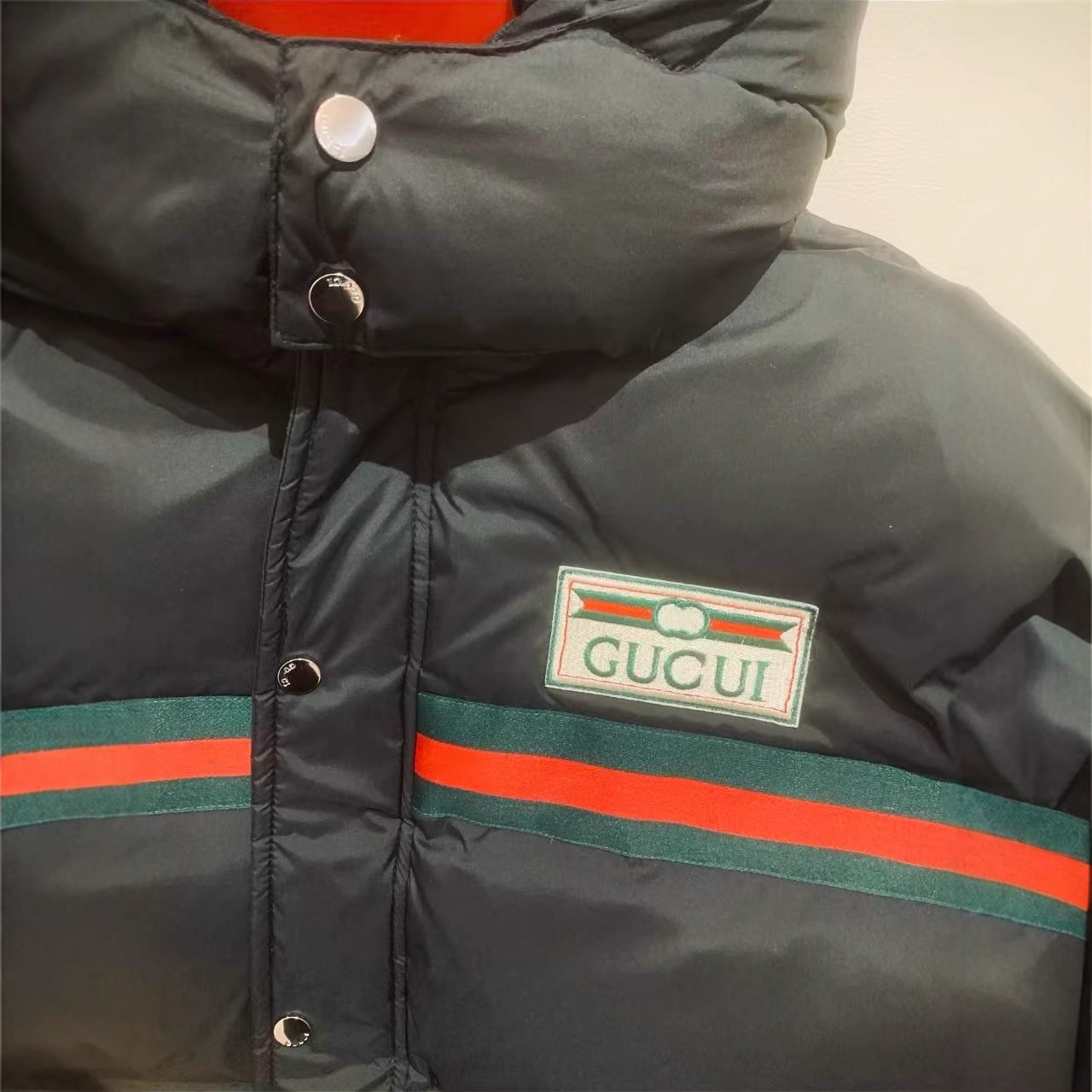 古家26新款羽绒织带经典刺绣羽绒服外套白鸭绒宽松上衣GG家情侣款