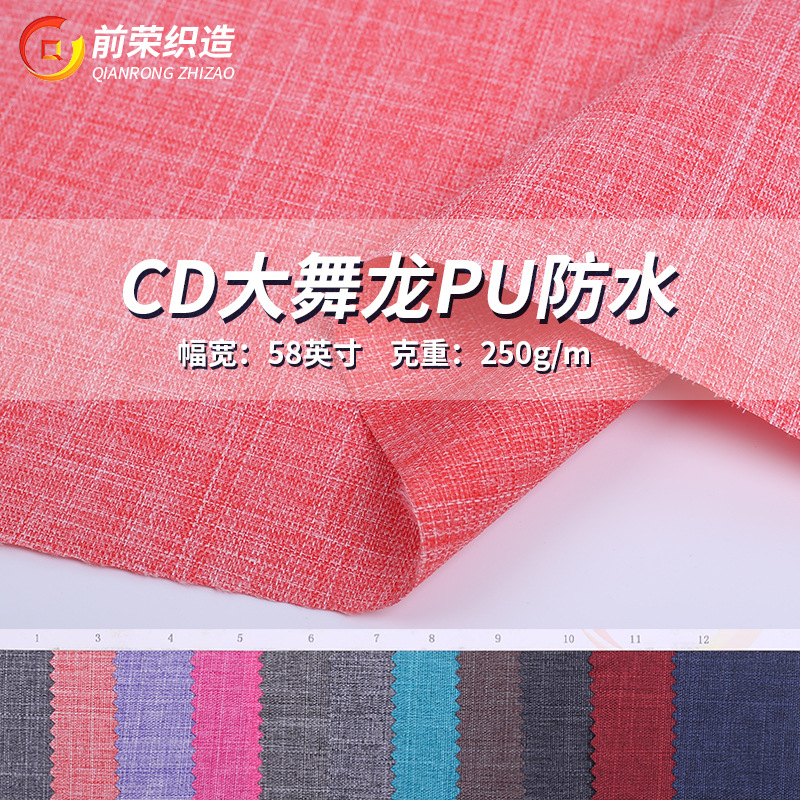 厂家供应1357#CD大舞龙布PU防水布料 pu防水涤纶箱包面料批发