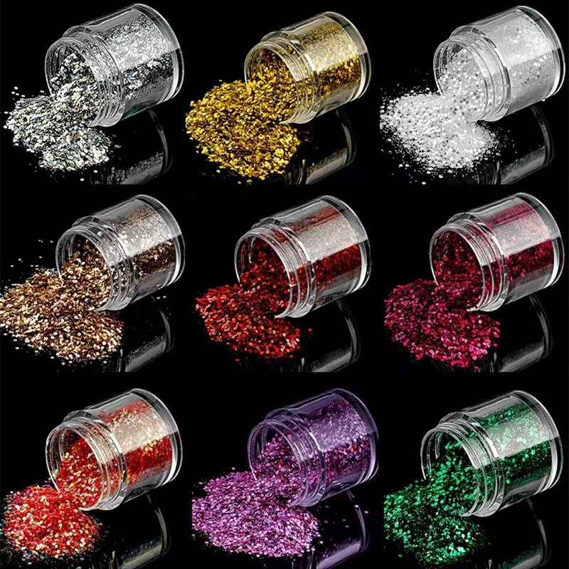 2024跨境新款金葱粉闪光粉彩色美甲彩妆闪粉亮片厂家现货20g装