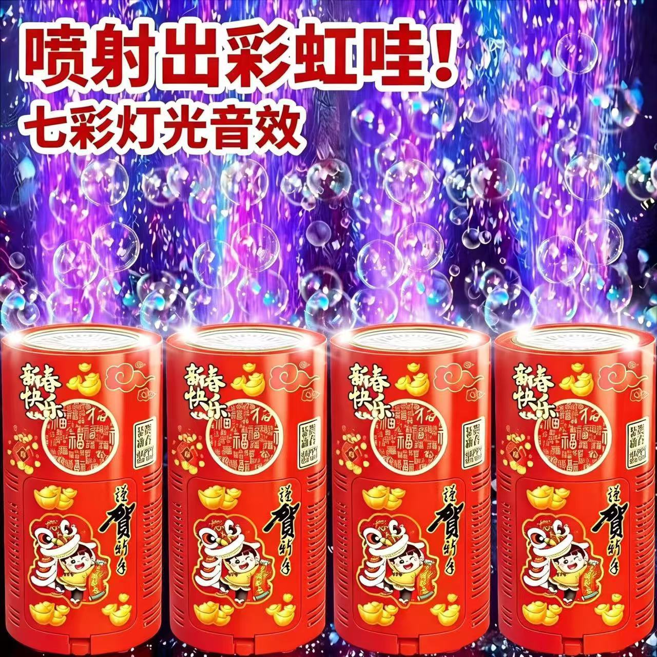 新年烟花泡泡机过年玩具发光音效节日礼花电动吹泡泡新年儿童玩具
