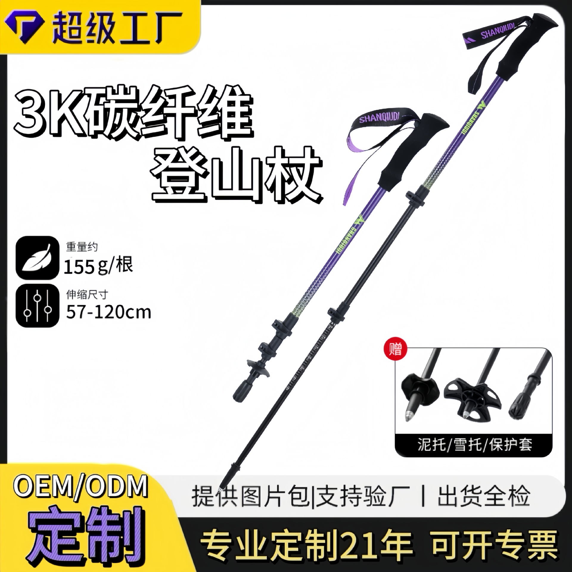 【工厂】高端5折叠碳素登山杖手杖折叠防滑拐杖超轻便携越野登山