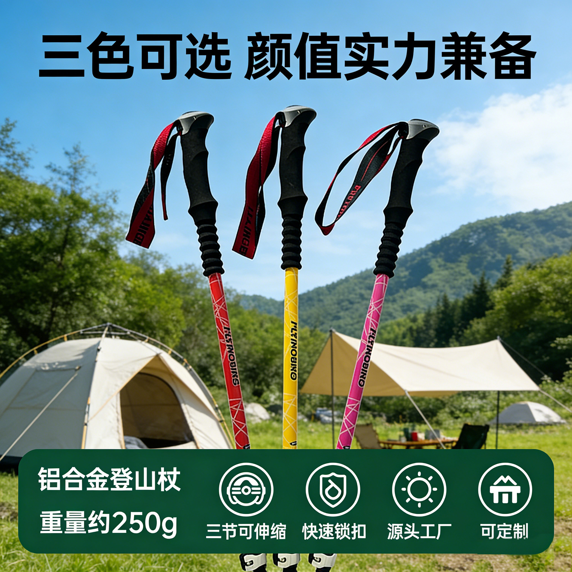 户外登山杖手杖配件登山徒步老人拐杖便携超轻爬山必备神器铝合金