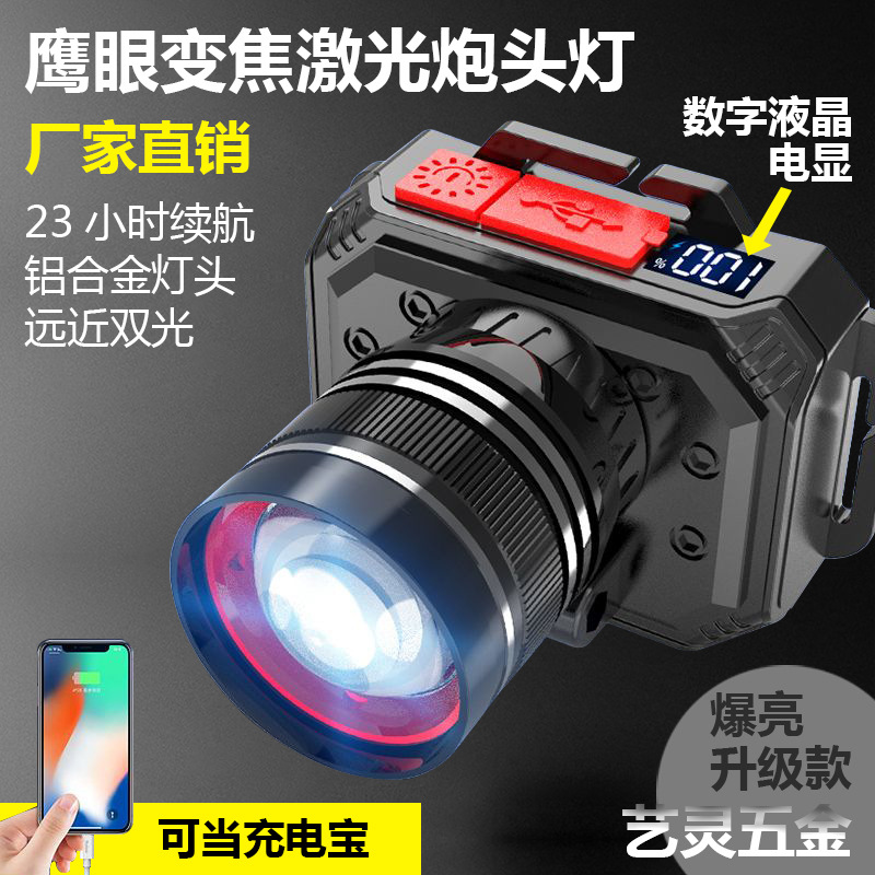 跨境热款强光头灯八核爆亮 LED头戴头灯家用户外远射变焦夜钓矿灯