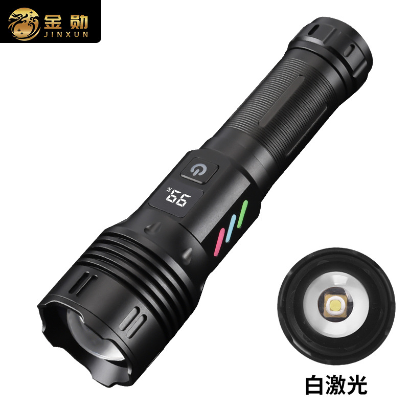 跨境强光白激光手电筒USB充电数显白户外远射照明手电充电式