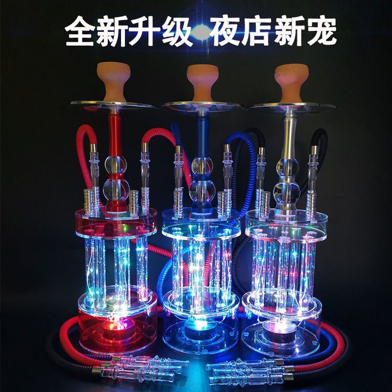 新款带灯阿拉伯瓶酒吧清吧水烟成品 双人亚克力三角壶水烟壶全套