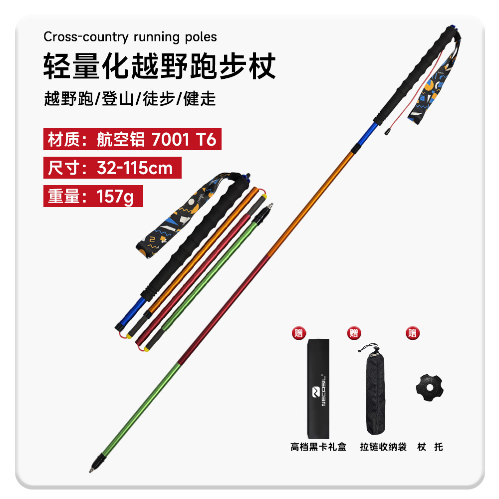 折叠伸缩登山杖越野跑步超轻户外手杖铝合金7001 T6行山杖四节
