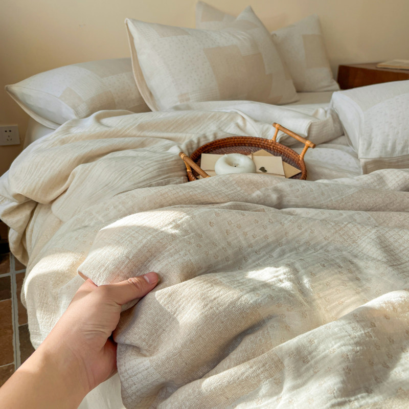 法式复古纯棉全棉双层纱四件套2026新款被套床单四季通用床上用品