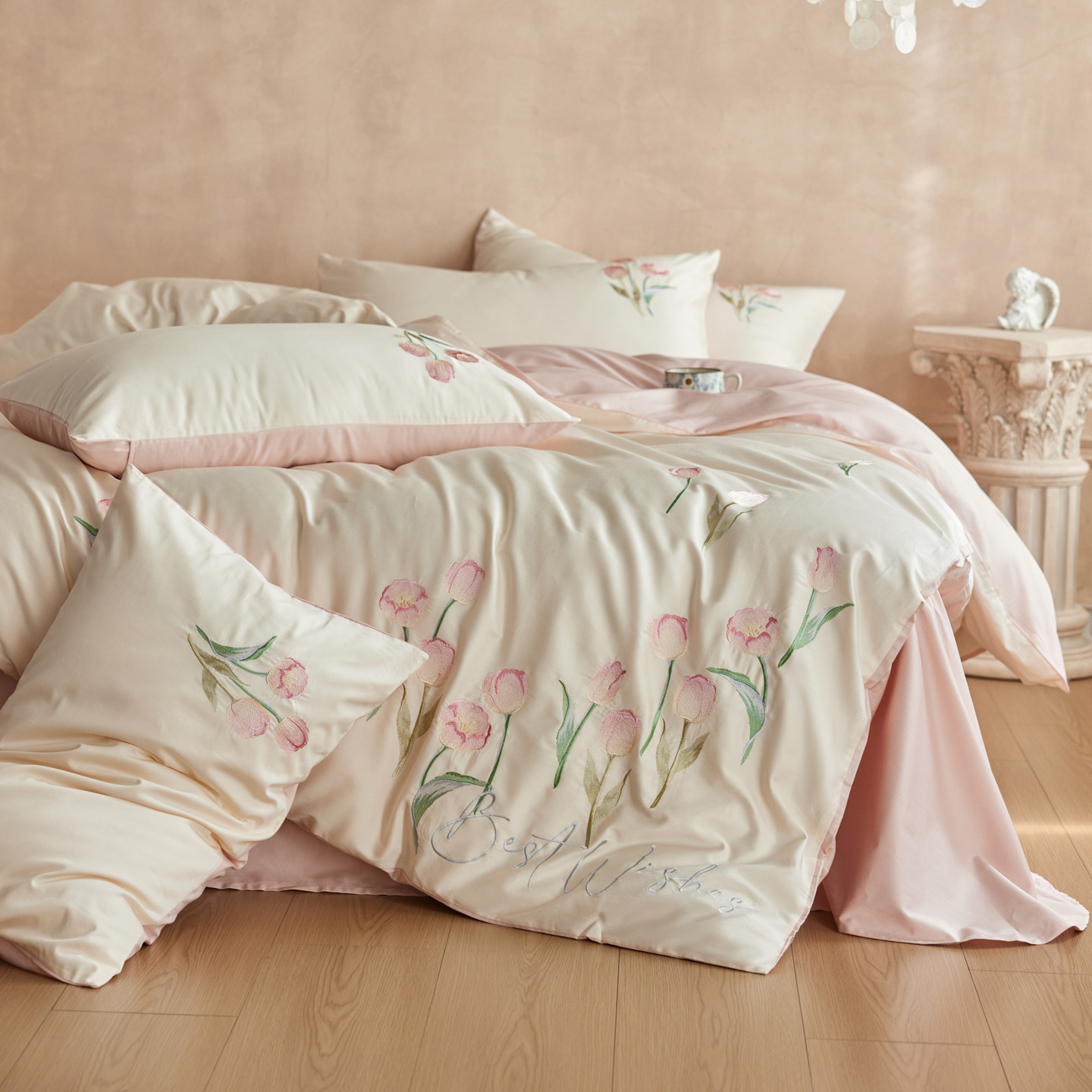 高级60S Pro兰精天丝玫瑰刺绣四件套夏季真丝滑被套凉感床单床品4