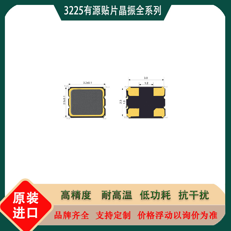 3225贴片有源晶振50M52M54M100M四脚振荡器1.8V-3.3V工业级低功耗