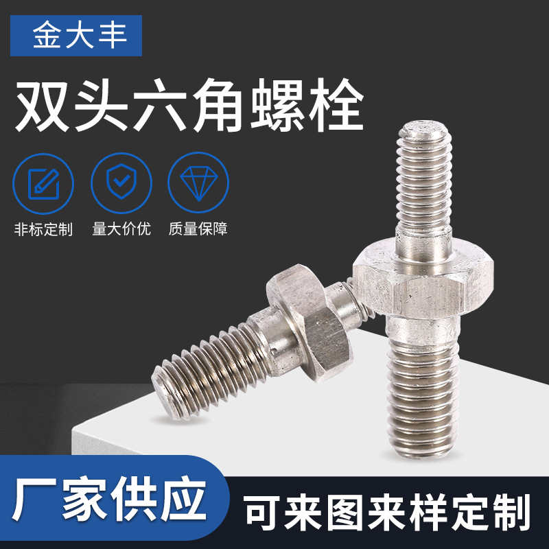 批发供应双头六角螺栓CNC非标零件加工304不锈钢螺栓螺母厂家定制