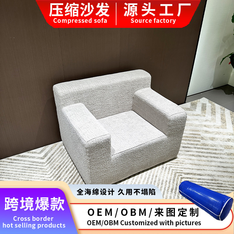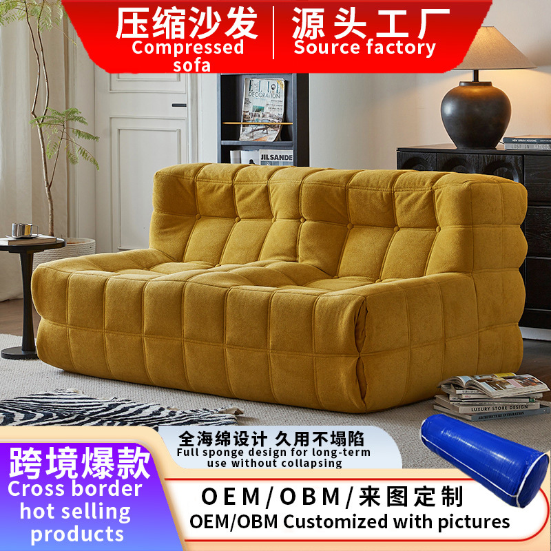 跨境定制全海绵压缩沙发无骨架休闲椅客厅卧室懒人可躺小羊羔绒