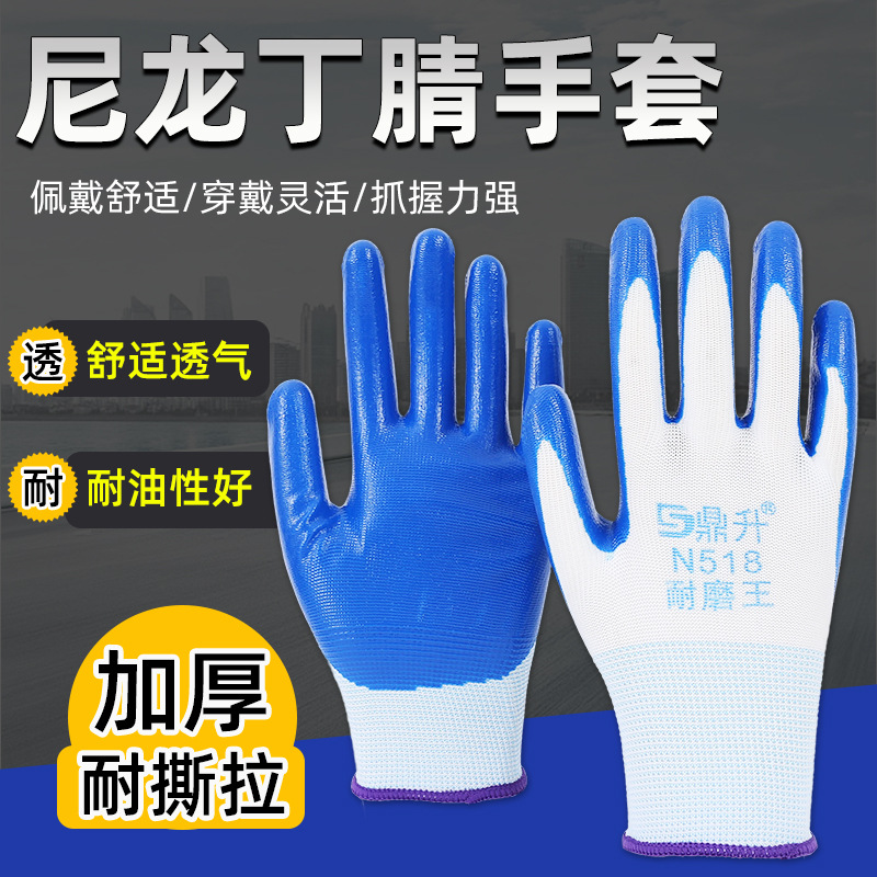 鼎升N518劳保手套薄浸胶薄款耐磨王防滑防油胶皮机械透气丁腈橡胶