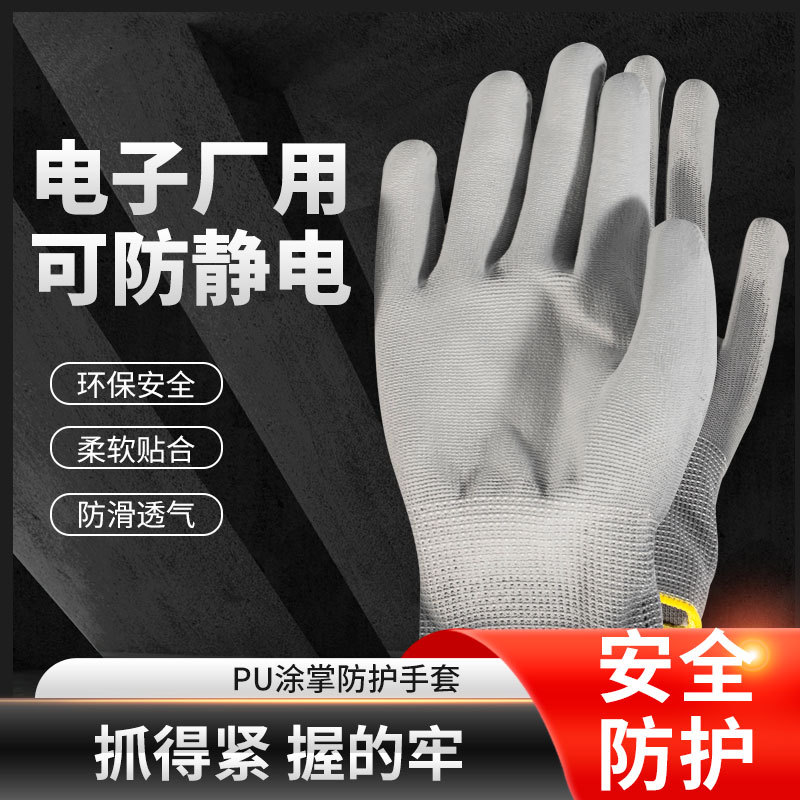 PU涂指涂掌劳保手套白色尼龙防静电手套薄款防滑耐磨劳保手套