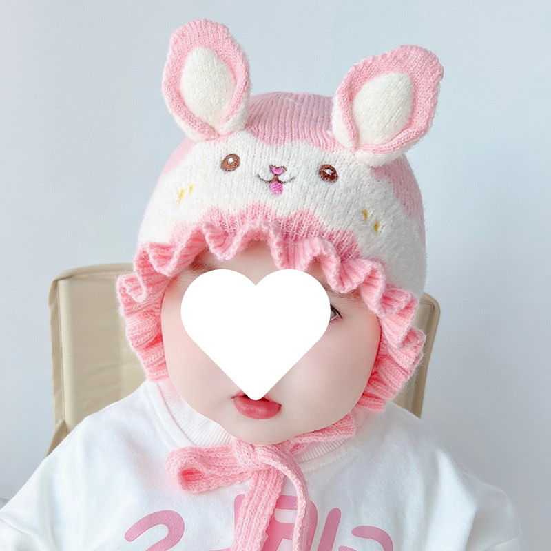 感帽子新款婴儿帽子秋冬款可爱男女宝宝女童儿针织毛线兔子耳