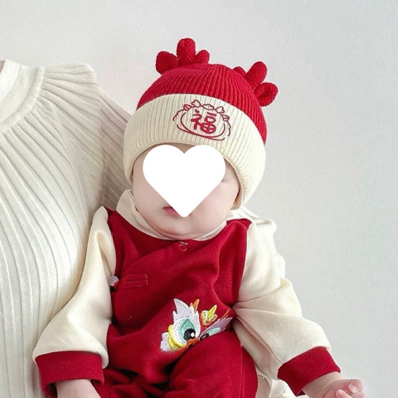 婴儿帽子秋冬季小月龄宝宝红色喜庆儿满月白天保暖针织帽线帽