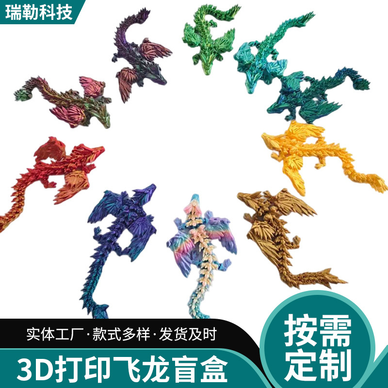 跨境供应3D打印创意摆件关节可动水晶飞龙桌面3D盲盒卡通