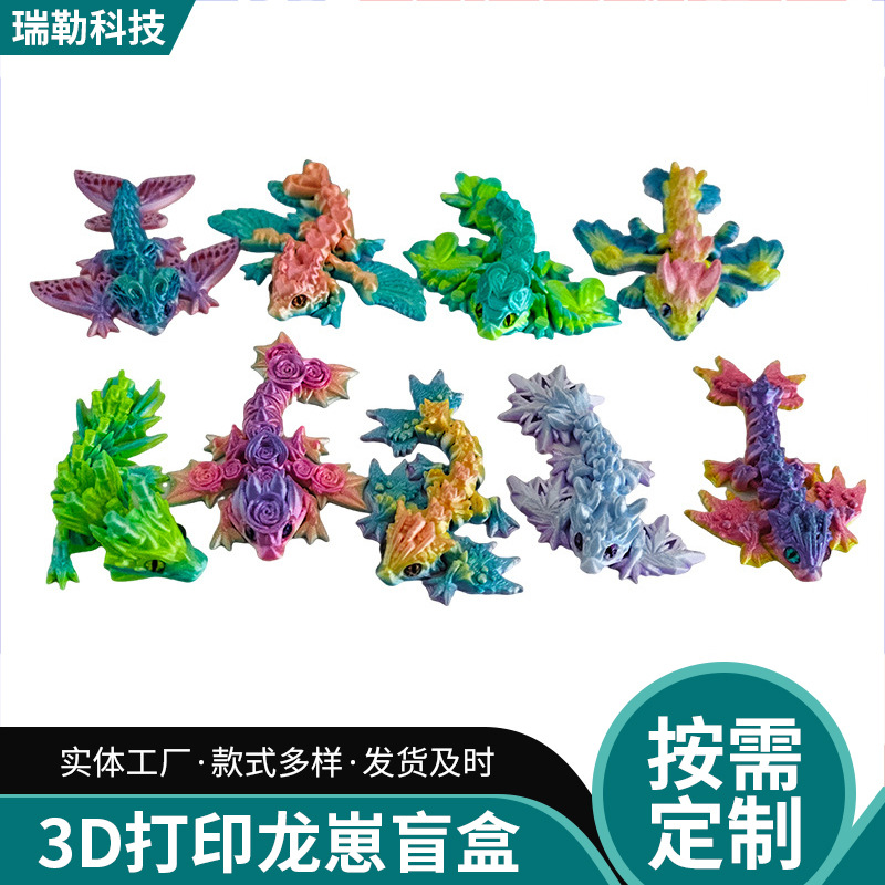 PLA龙仔盲盒3D打印玫瑰龙水晶龙神龙工艺品摆件批发造型卡通炫彩