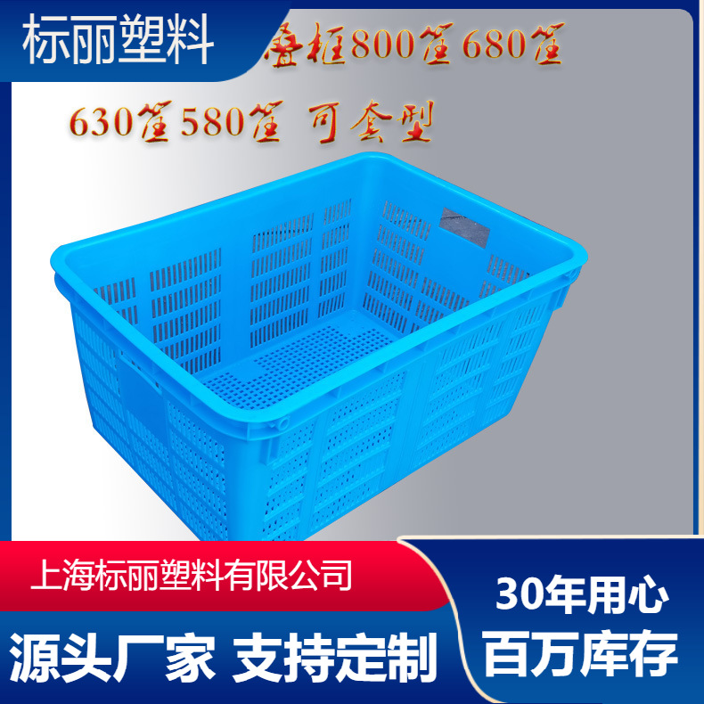 上海标丽塑料套叠箩筐 菜心筐蔬菜框 蓝色红色绿色箩筐周转筐