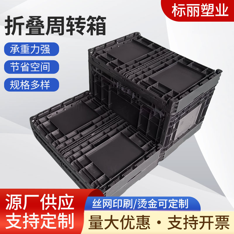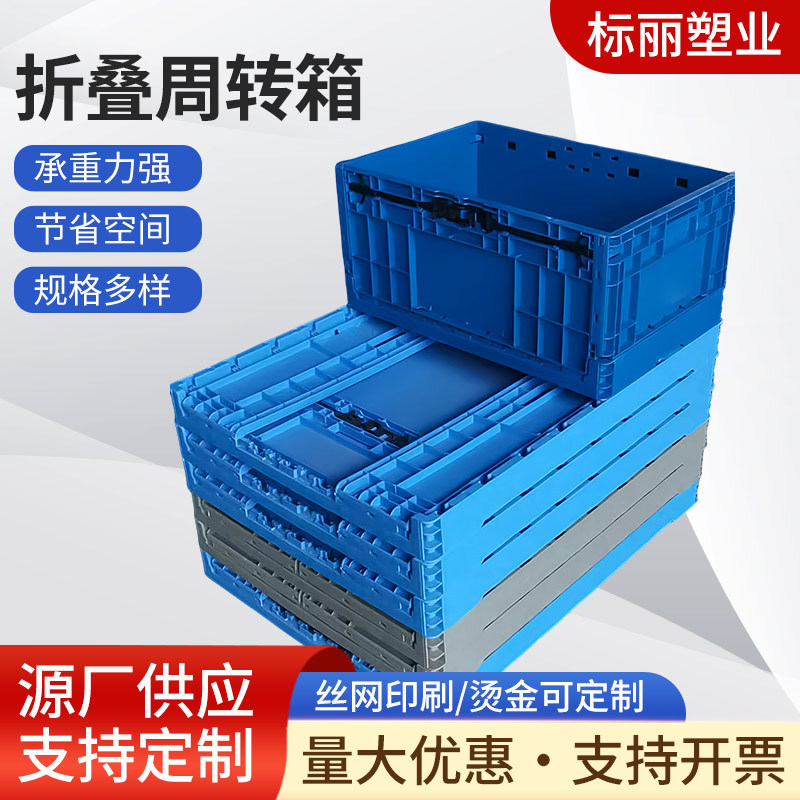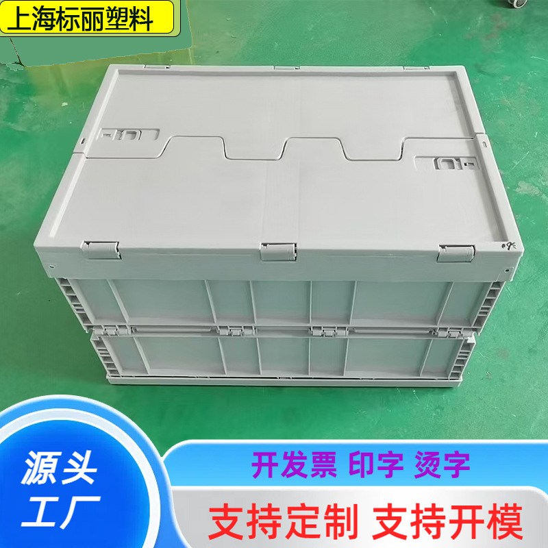 厂家直销600*400系列拦腰带盖折叠箱 塑料折叠物流箱 可折叠胶框