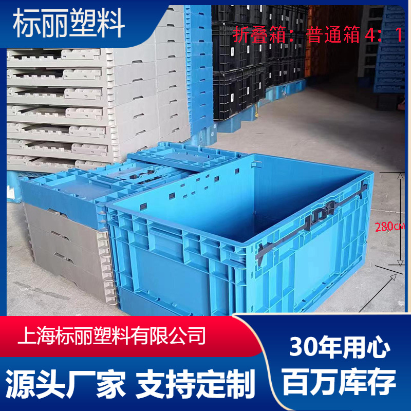 厂家直销 斜插翻盖物流箱 防尘收纳箱 600*400套叠塑料箱