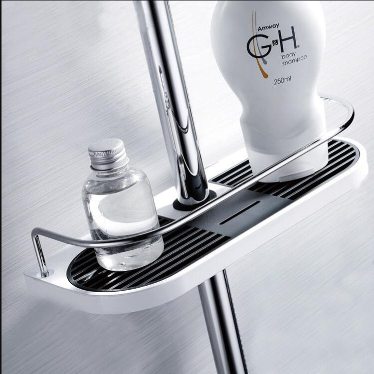 淋浴花洒杆置物架免打孔可升降花洒杆托盘带挂钩多功能收纳架