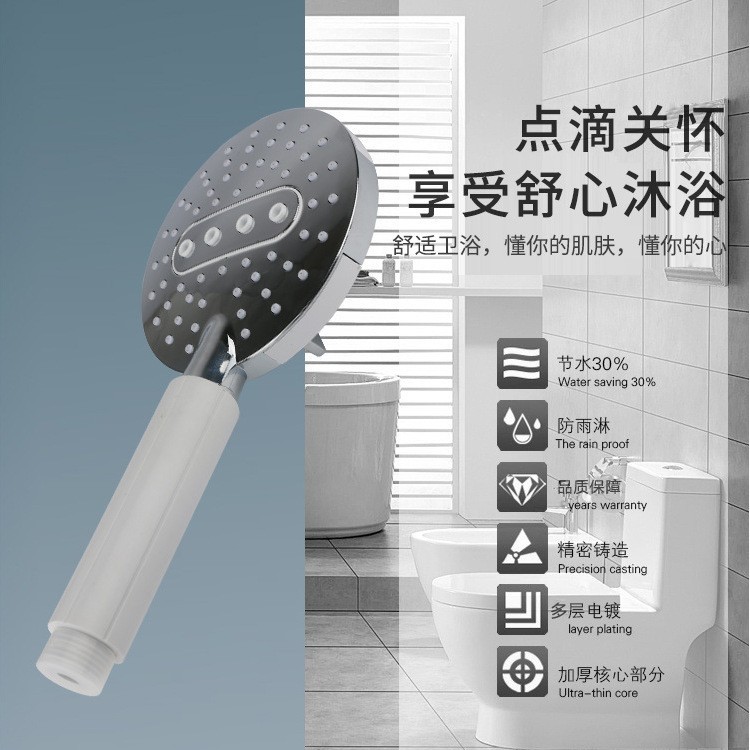 灰三档花洒套装电镀喷头吸塑三件套手持淋浴器洗澡节能沐浴家用